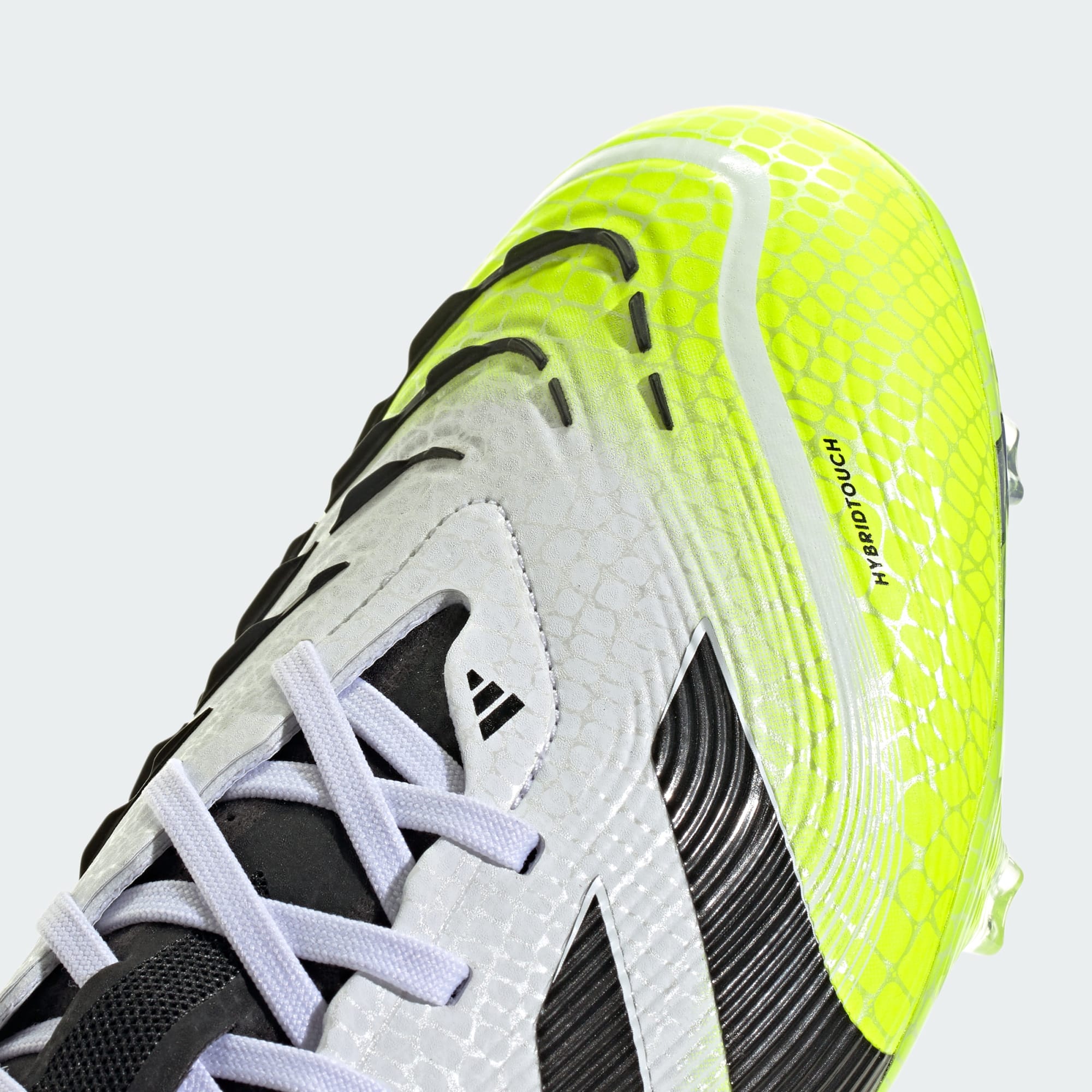 Scopri la differenza tra mirare a segnare e sapere che lo farai con le scarpe adidas Predator, create per i gol. Queste scarpe da calcio Pro hanno una tomaia HybridTouch flessibile con finiture in gomma Strikeskin che aiutano a controllare ogni colpo di palla. Se le giri, troverai una suola Controlplate a tutta lunghezza progettata per mantenerti stabile sull'erba asciutta.