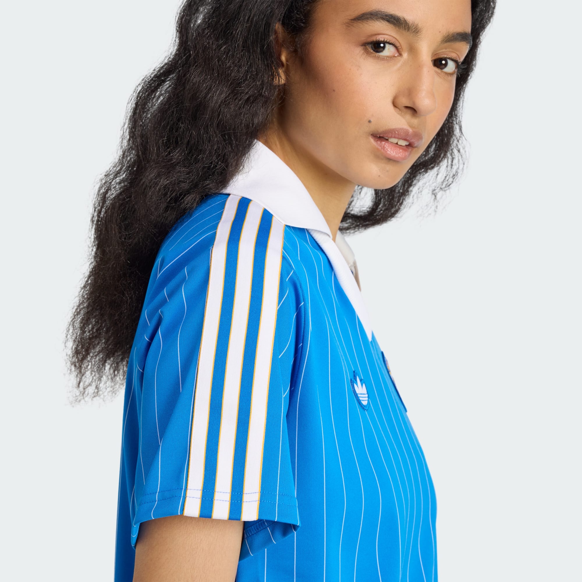 Gli spalti del football degli anni '80 erano un terreno fertile per la moda iconica. Parte di una collezione adidas che strizza l'occhio a quell'epoca del bel gioco, questo abito Real Madrid combina le classiche caratteristiche della maglia da gioco, tra cui il colletto henley, lo stemma della squadra ricamato e la finitura lucida. Il tessuto morbido e leggermente elastico garantisce una sensazione speciale come l'aspetto.