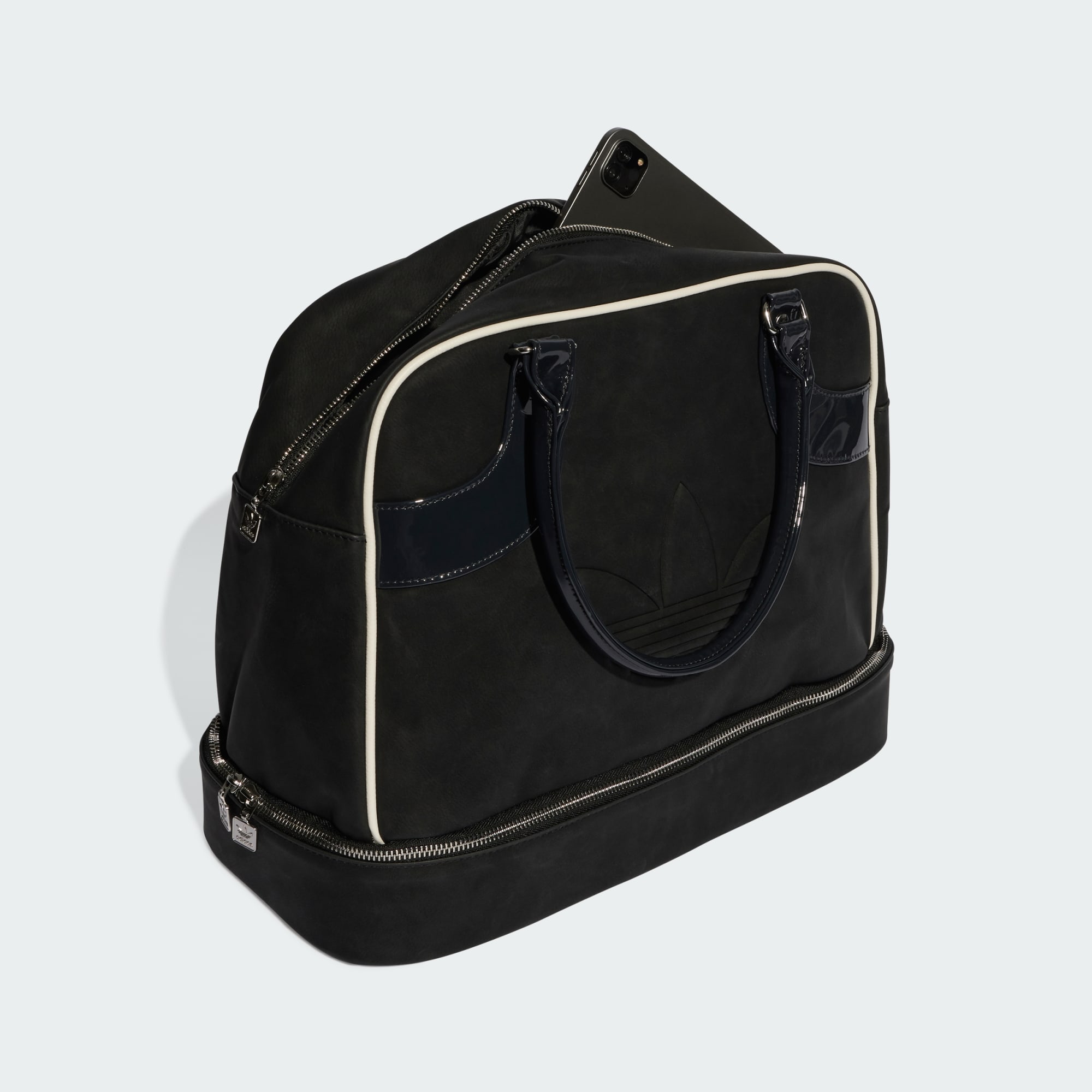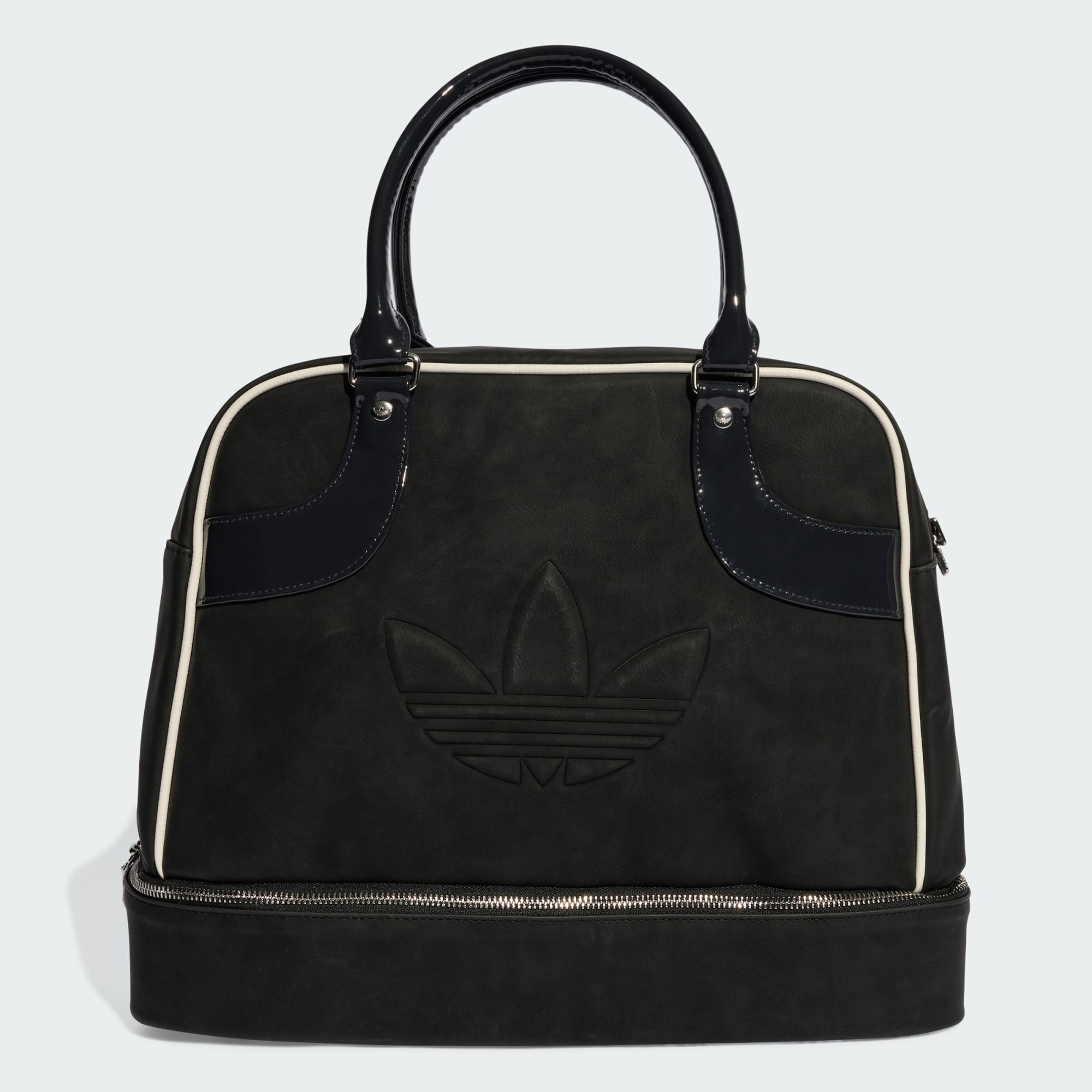 Ispirata alle nostre silhouette d'archivio, questa grande borsa da bowling adidas è fatta per la vita in movimento. È realizzato con un mix di morbida ecopelle ed ecopelle verniciata lucida. Le tasche con zip mantengono gli oggetti essenziali organizzati e al sicuro.