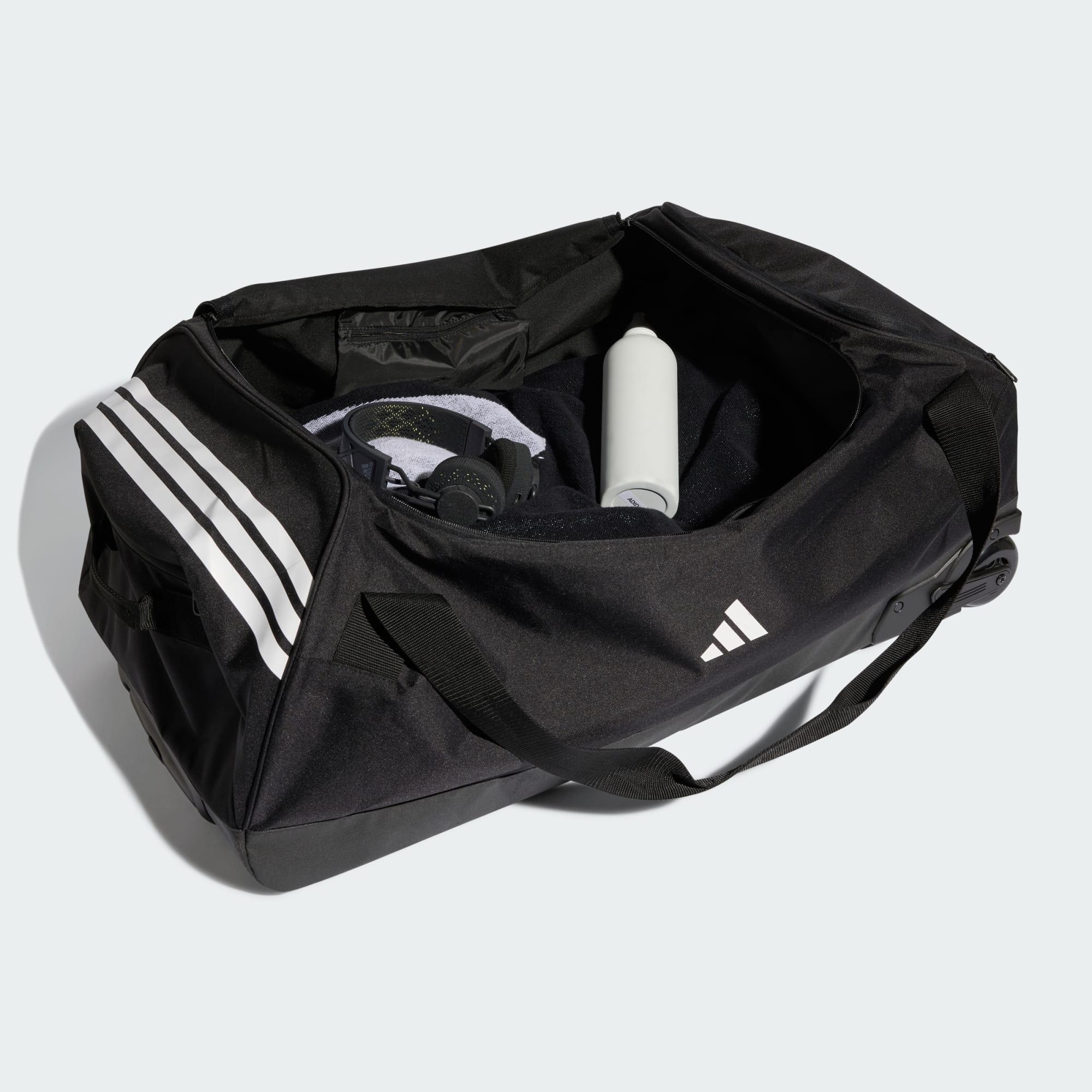 Costruita per le esigenze del calcio, la Tiro Trolley Team Bag con ruote Extra Large offre lo spazio e la resistenza necessari per gli allenamenti e le partite. Con una capienza generosa, dispone di spazio sufficiente per organizzare kit, scarponi e accessori per arrivare preparati. Realizzata in resistente tela a trama semplice, la borsa combina la resistenza con una finitura pulita. Lo scomparto principale si apre con una chiusura lampo sicura, facilitando l'accesso all'attrezzatura e mantenendo tutto protetto durante il viaggio. Il logo adidas Performance è stampato sul lato per un facile riconoscimento del marchio. Le ruote resistenti e la struttura robusta consentono di gestire agevolmente gli aeroporti e gli stadi più affollati, mentre l'interno ampio aiuta a mantenere organizzati kit e attrezzatura durante il viaggio. Progettata per essere trasportata senza sforzo, la borsa trolley è costruita per garantire il trasporto agevole. Offre funzioni affidabili a giocatori e coach, ovunque li porta il gioco.