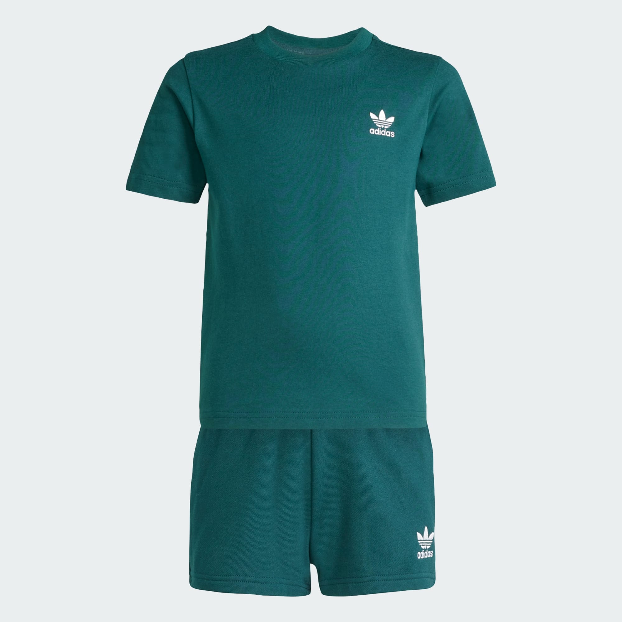 Questo completo adidas kids composto da T-shirt e short è perfetto per affrontare qualsiasi sfida. Il look monocromatico mette in risalto il logo del Trifoglio su entrambi i capi. La struttura interamente in cotone e il girovita con cordino sugli short assicurano morbidezza e praticità.
