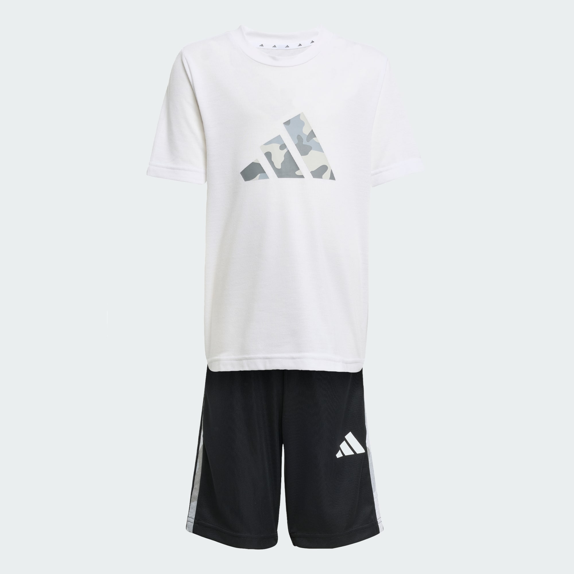 Con questo completo adidas Train Essentials valorizzato da una stampa camo, bambini e bambine sono sempre pronti al gioco. Questo outfit versatile prepara i giovani atleti a qualsiasi attività, in qualsiasi momento. Il completo include una T-shirt girocollo a maniche corte e un paio di short sportivi coordinati. Leggeri e facili da indossare a scuola, al parco e in qualsiasi altra situazione, entrambi i capi si caratterizzano per le 3 strisce e il logo a 3 barre con accattivante motivo camo. CLIMACOOL assorbe e disperde l’umidità, lasciando il corpo fresco e asciutto per prestazioni senza distrazioni. CLIMACOOL aiuta a gestire l’umidità grazie a materiali che la assorbono e la disperdono rapidamente. Le sue fibre ad asciugatura rapida donano una sensazione di freschezza sulla pelle.