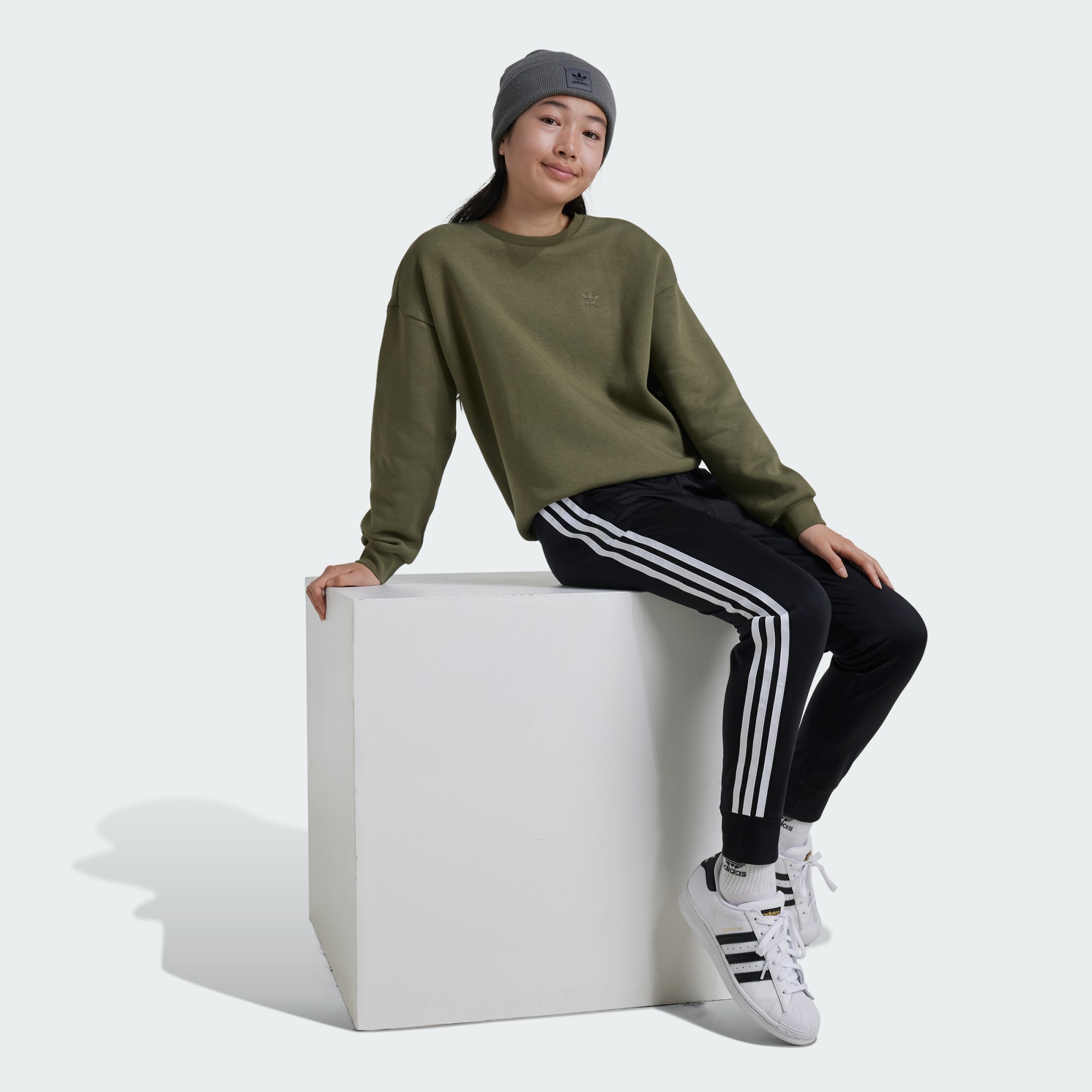 Le serate accoglienti e le giornate informali richiedono una felpa comoda che si adatti al tuo stile. Questo pullover ampio da bambino abbina morbido pile e tonalità neutre per un look comodo ed elegante. Il logo Trefoil ricamato sul petto aggiunge un tocco di stile sportivo ispirato ad adidas.