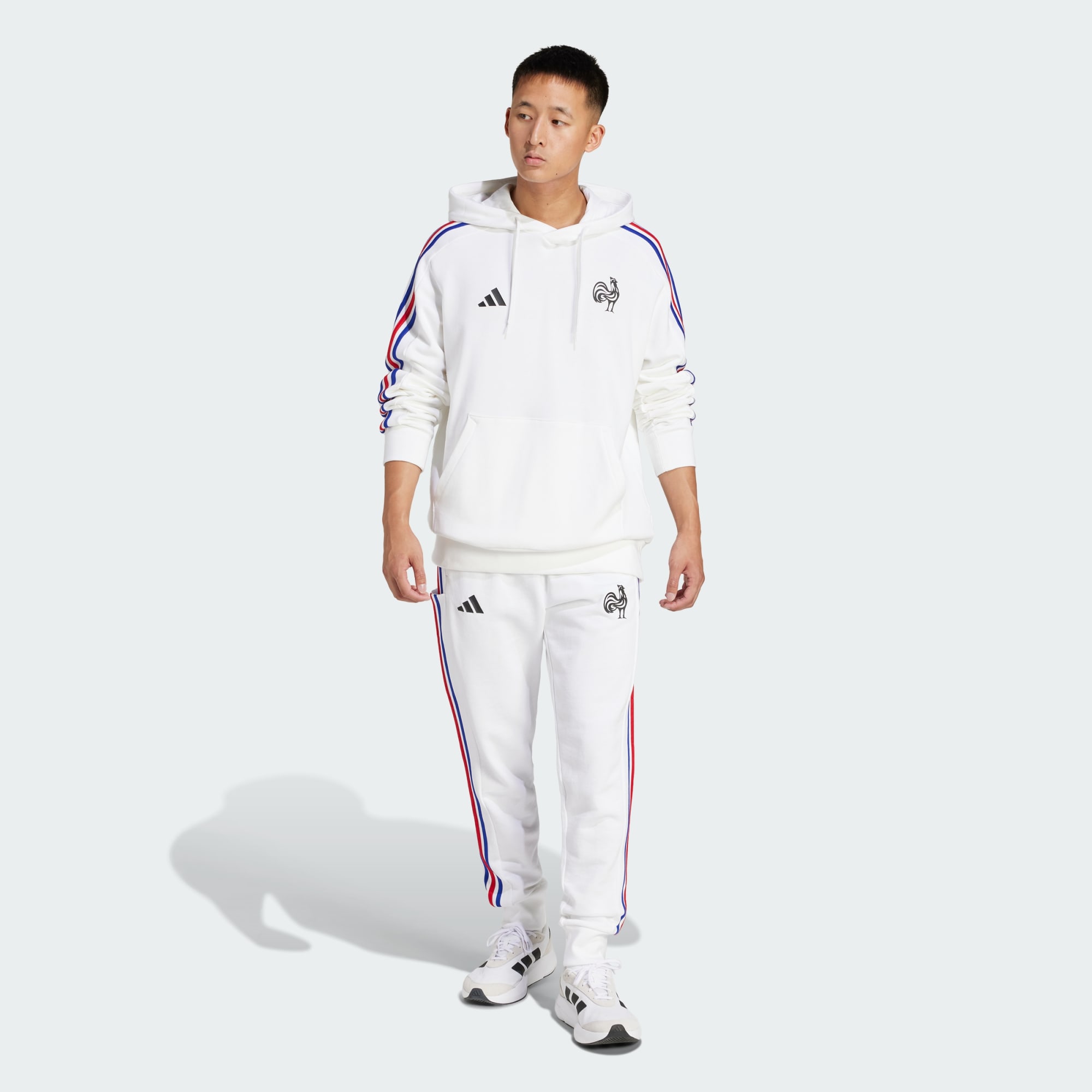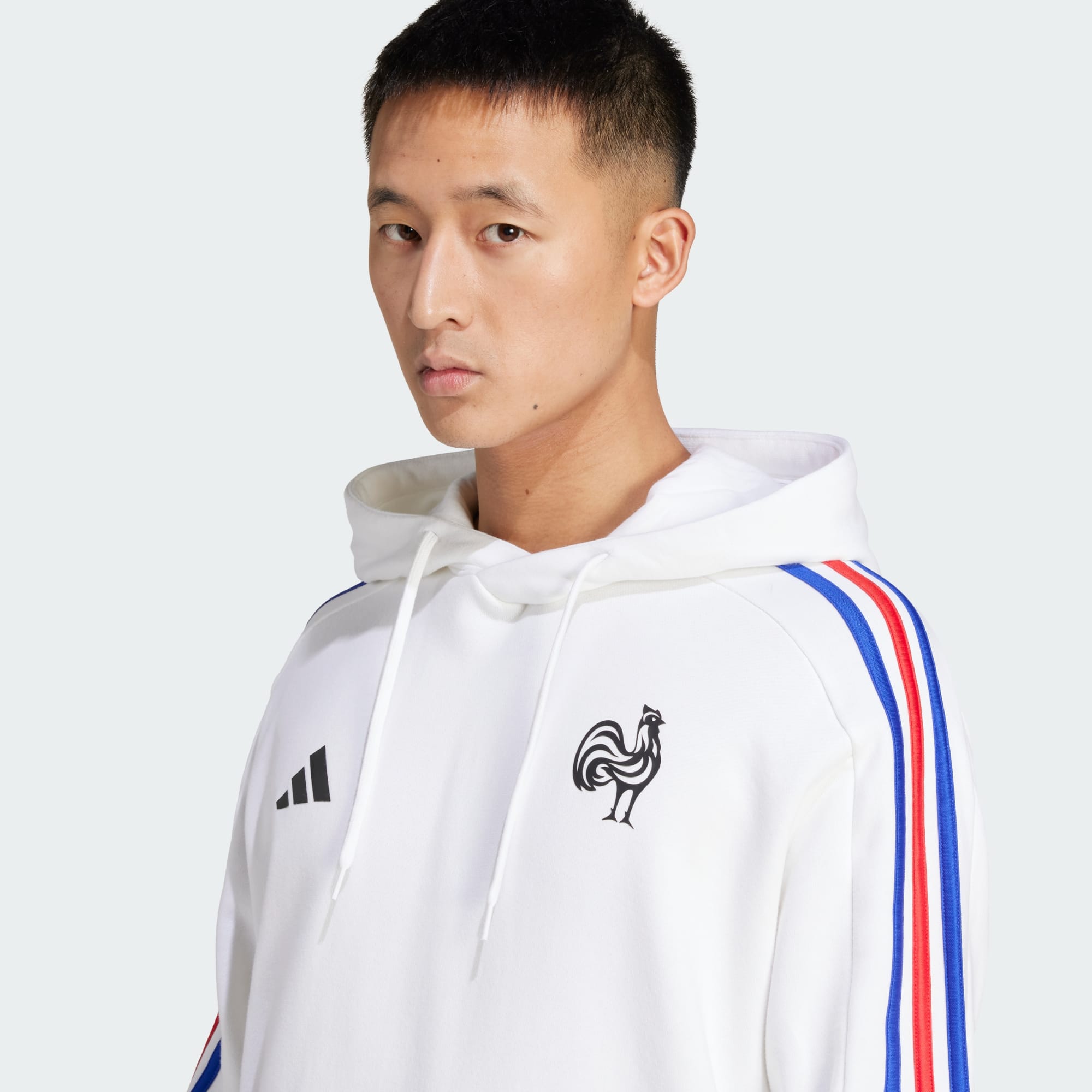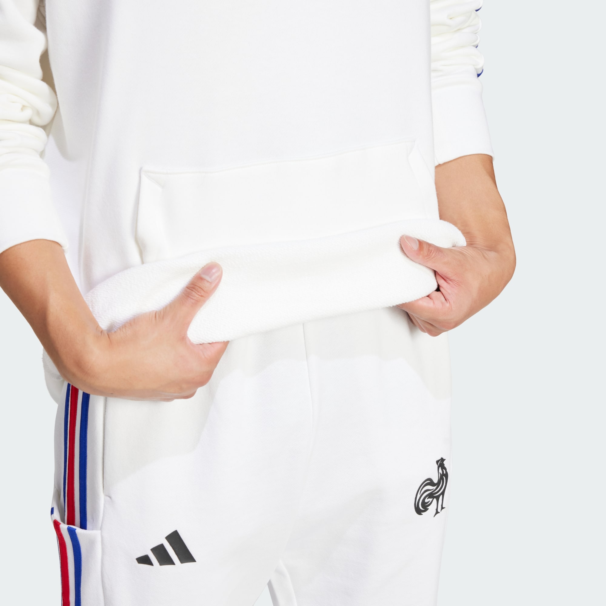 Mostra a tutti la tua passione per il rugby. Con le 3 strisce tricolore lungo le maniche e lo stemma della squadra sul petto, questa felpa con cappuccio adidas della Francia indica senza dubbi per chi fai il tifo. La struttura in morbida spugna e i dettagli a coste la rendono perfetta da indossare sopra la maglia del team nelle mattine più fresche.