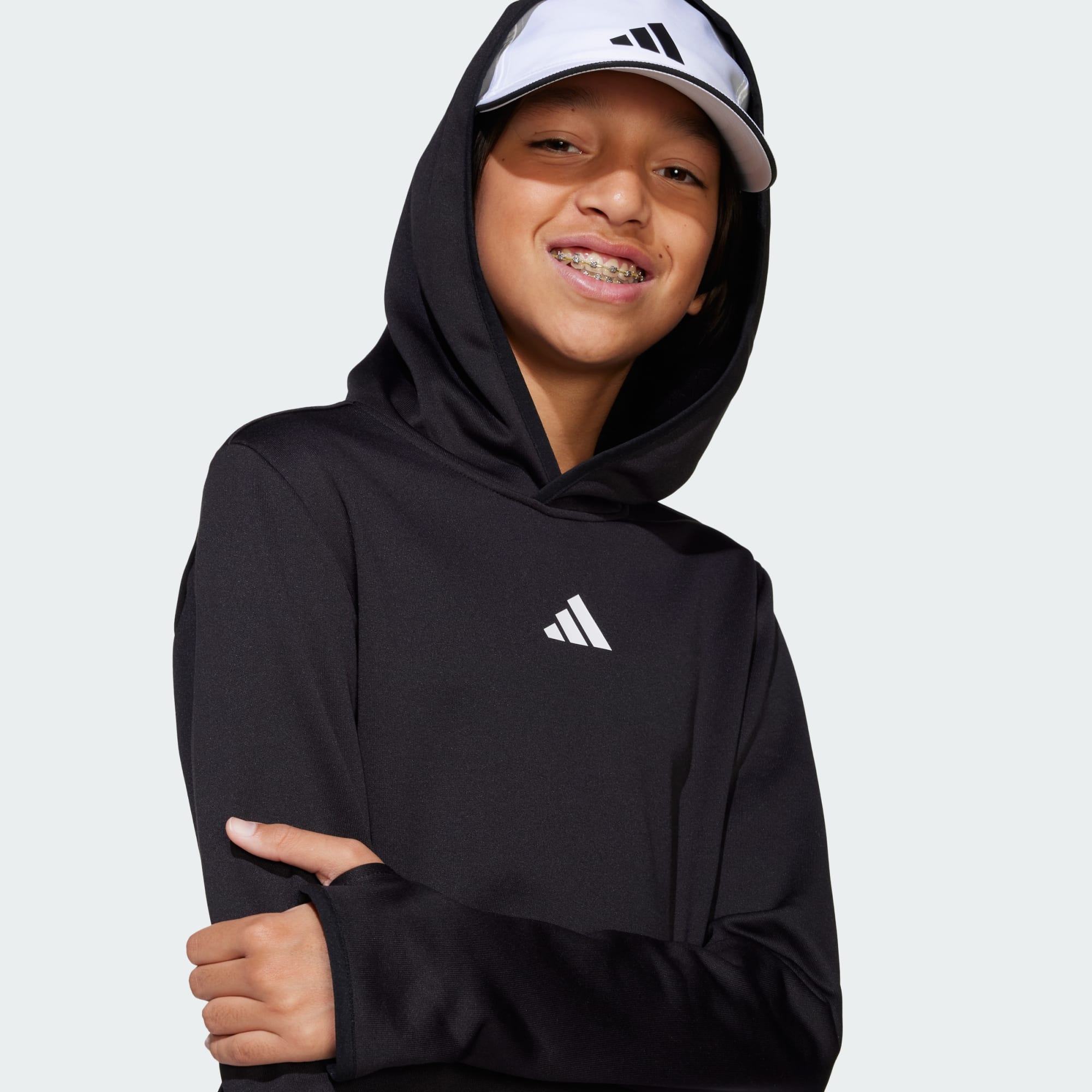 Questa felpa con cappuccio junior assicura il massimo comfort tra un evento e l'altro. Realizzata in morbido tessuto felpato riciclato, si abbina perfettamente ai pantaloni della tuta o ai jeans. La tecnologia CLIMAWARM trattiene il calore e allontana l'umidità dalla pelle per garantirti prestazioni ottimali. L'ampio cappuccio e le asole per i pollici assicurano una copertura extra e ti permettono di concentrarti sul futuro dello sport nel massimo comfort. I materiali isolanti della tecnologia CLIMAWARM trattengono il calore per una temperatura corporea ottimale. Le fibre antiumidità mantengono la pelle fresca e asciutta. Calore e comfort assicurati. Questo prodotto è realizzato al 100% con materiali riciclati. Implementare la nostra produzione con materiali riciclati ci permette di ridurre gli sprechi, l'utilizzo di fonti non rinnovabili e l'impatto ambientale dei prodotti che produciamo.