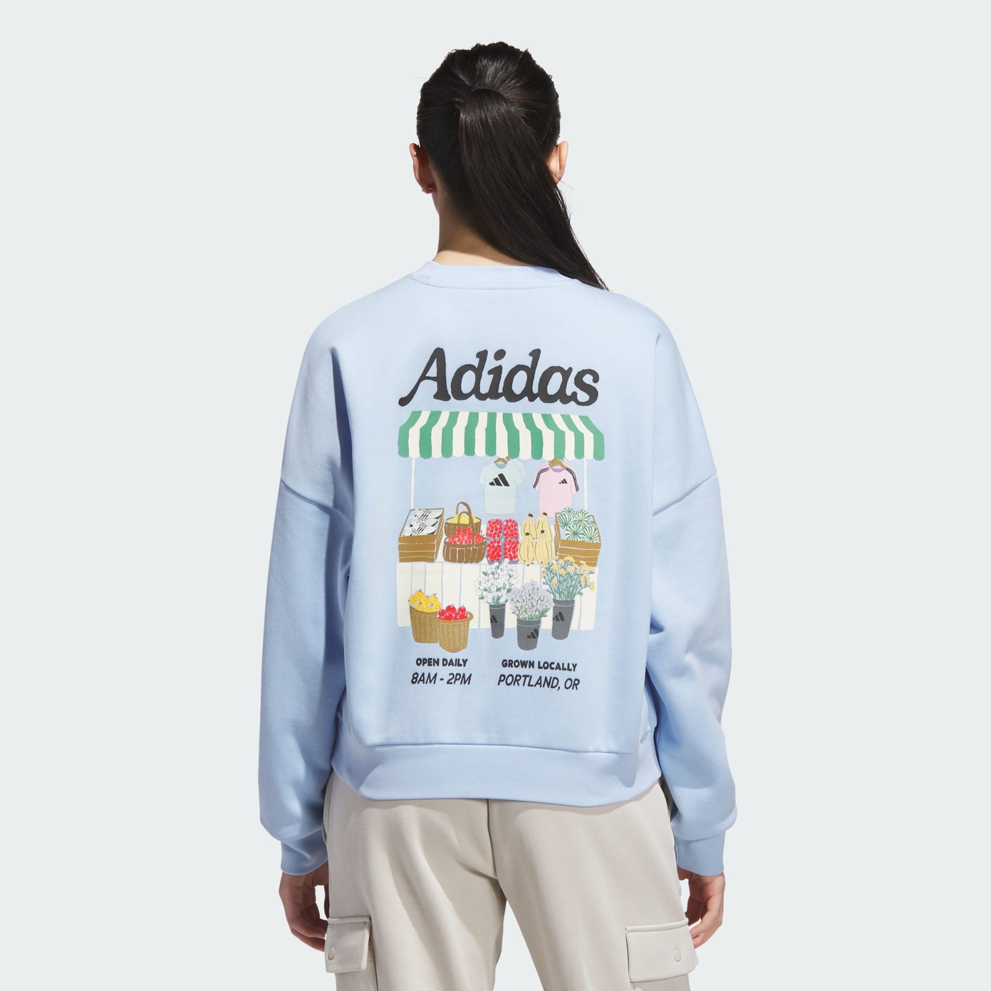 Ispirato a mercati agricoli locali, la grafica di questa felpa adidas aggiunge un tocco stravagante a un capo comodo. Il morbido misto cotone e la forma rilassata rendono questo capo facile da indossare. Le grafica vivaci presentano un mix giocoso di frutta e dettagli esclusiva adidas.