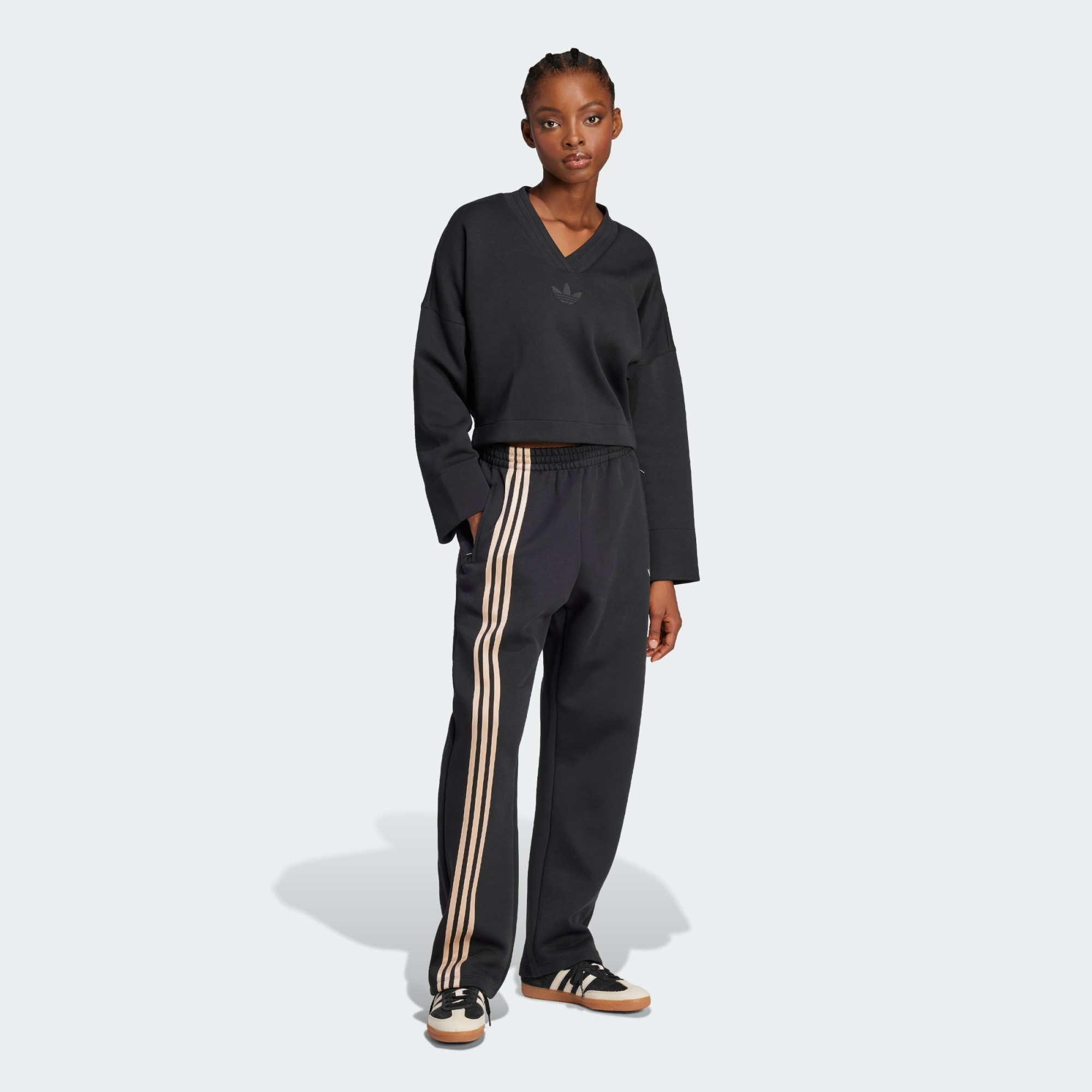 Questa felpa adidas è un capo facile da usare, sia che la si metta sopra una T-shirt e una calzamaglia per una passeggiata mattutina, sia che la si abbini a pantaloni a gamba larga per una serata casual. Il morbido tessuto in cotone e poliestere garantisce il massimo comfort, mentre la forma rilassata è un'atmosfera rilassata. Il profondo scollo a V aggiunge un tocco femminile.