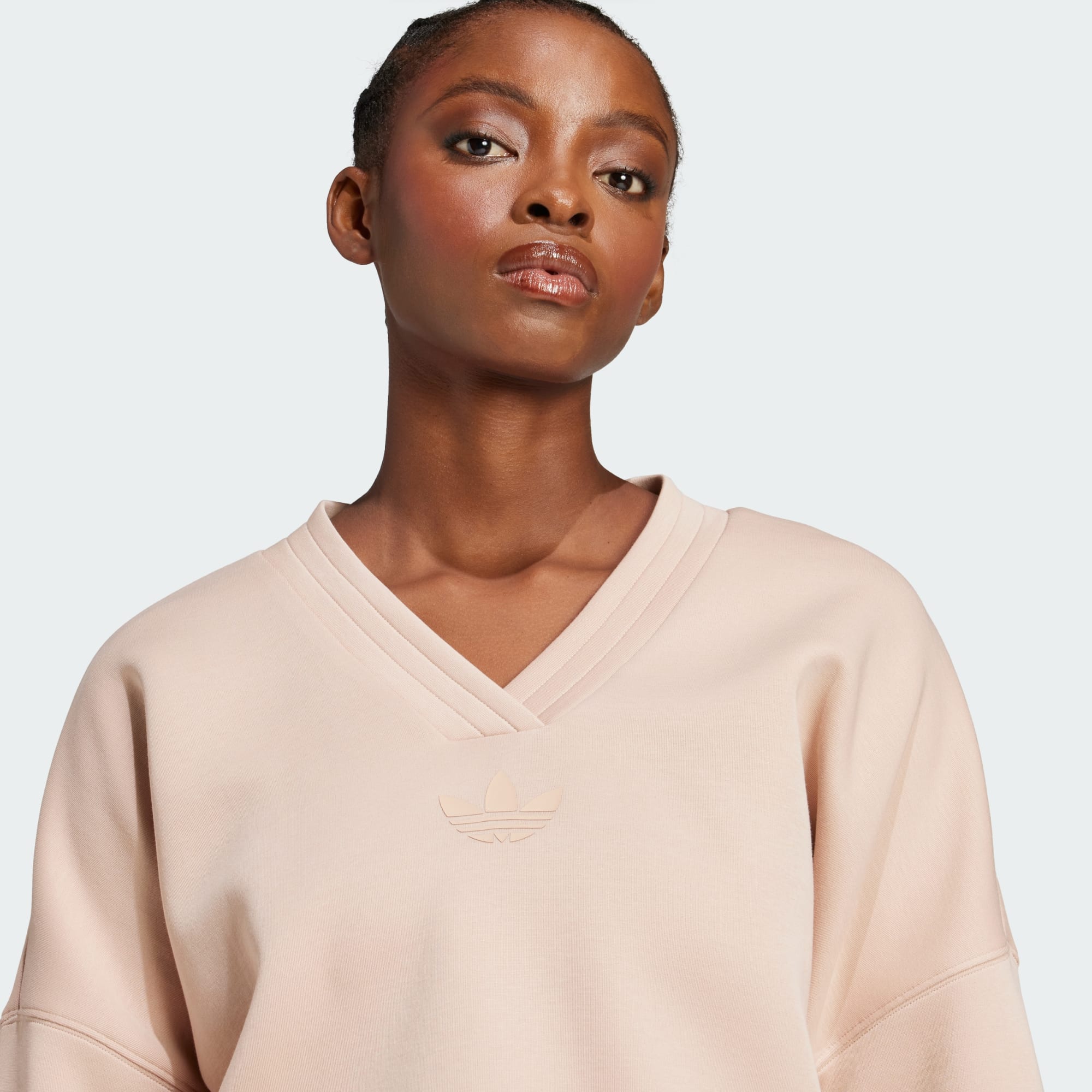 Questa felpa adidas è un capo facile da usare, sia che la si metta sopra una T-shirt e una calzamaglia per una passeggiata mattutina, sia che la si abbini a pantaloni a gamba larga per una serata casual. Il morbido tessuto in cotone e poliestere garantisce il massimo comfort, mentre la forma rilassata è un'atmosfera rilassata. Il profondo scollo a V aggiunge un tocco femminile.