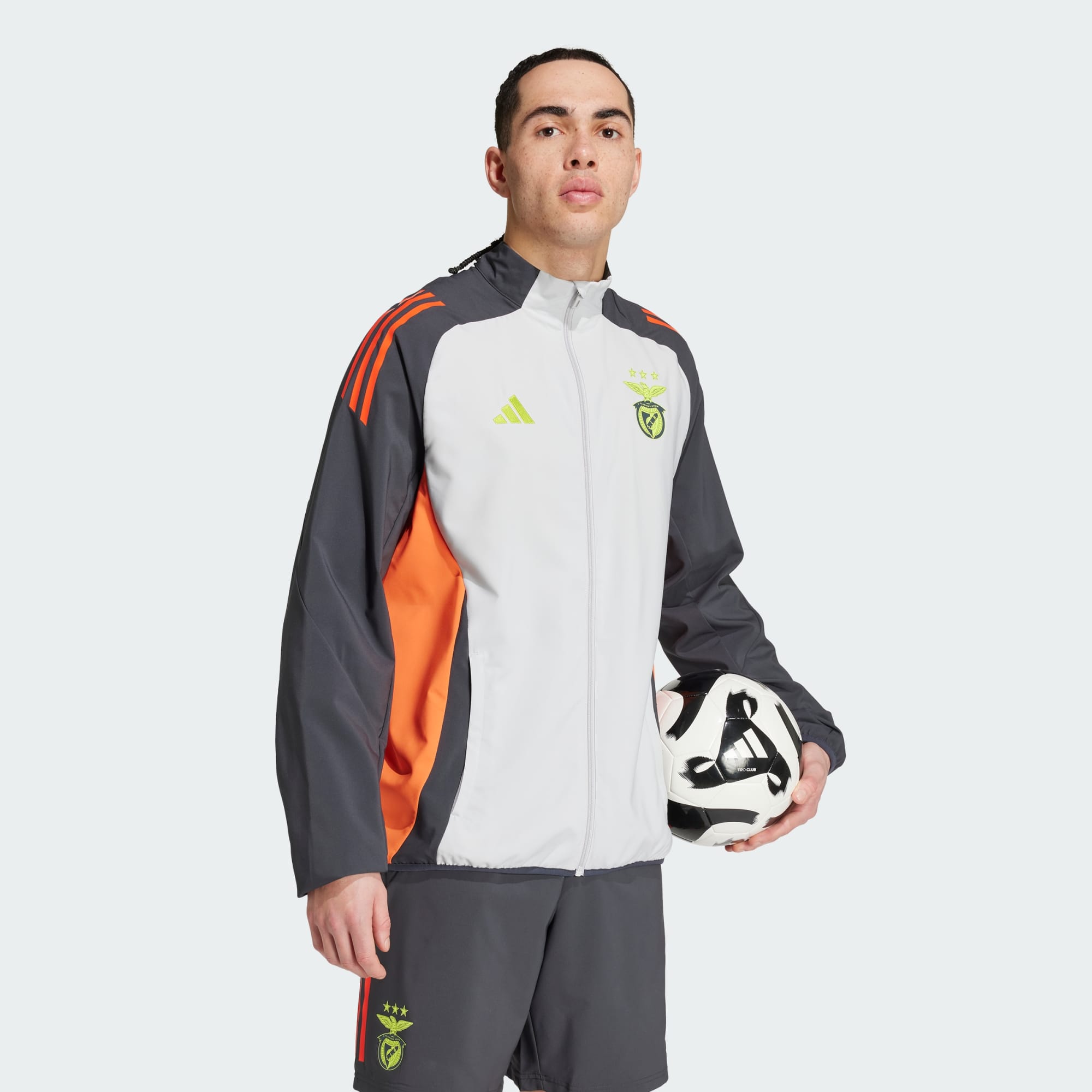 Sostieni la tua squadra da bordo campo. Questa giacca da rappresentanza adidas mostra a tutti la tua passione per il Benfica grazie allo stemma del club applicato a caldo. Creata per i momenti prima e dopo la partita, la struttura con zip integrale è progettata per offrire il massimo comfort ai giocatori. Le tasche con zip ti consentono di custodire gli oggetti importanti, così puoi concentrarti su quello che conta davvero. Questo prodotto contiene almeno il 70% di materiali riciclati. Implementare la nostra produzione con materiali riciclati ci permette di ridurre gli sprechi, l'utilizzo di fonti non rinnovabili e l'impatto ambientale dei prodotti che produciamo.