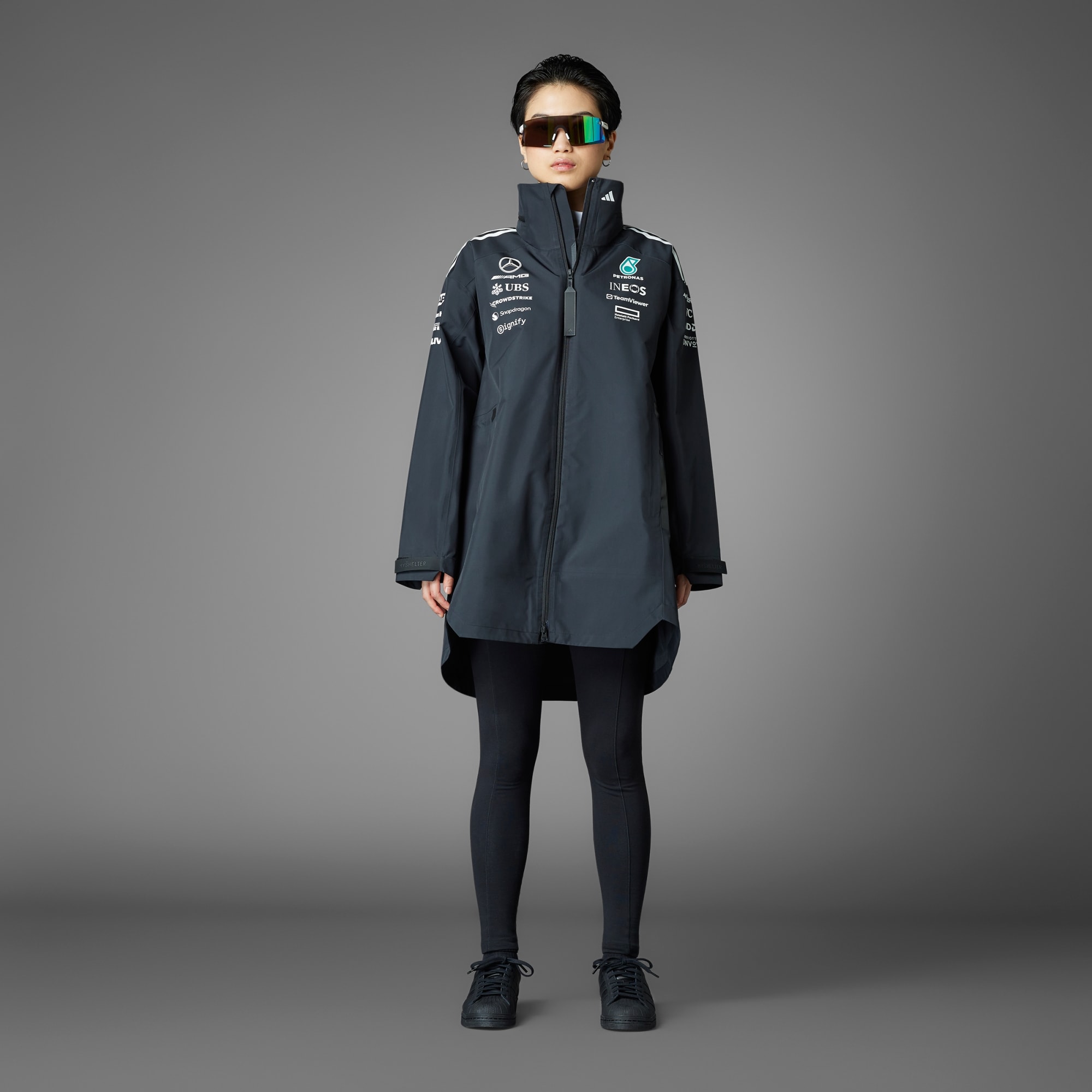 La giacca adidas x Mercedes-AMG PETRONAS F1 MyShelter unisce stile e prestazioni di alto livello. Grazie alla tecnologia RAIN.RDY con materiali impermeabili più all'avanguardia, potrai sfidare gli elementi proprio come il team Mercedes.
