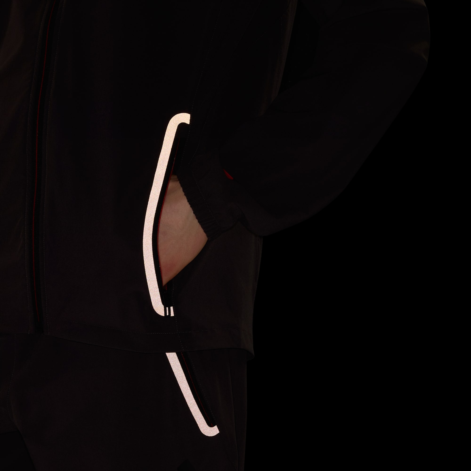 - Materiale principale: 87% poliestere (100% riciclato), 13% elastan; Fodera del cappuccio: 100% poliestere (100% riciclato)