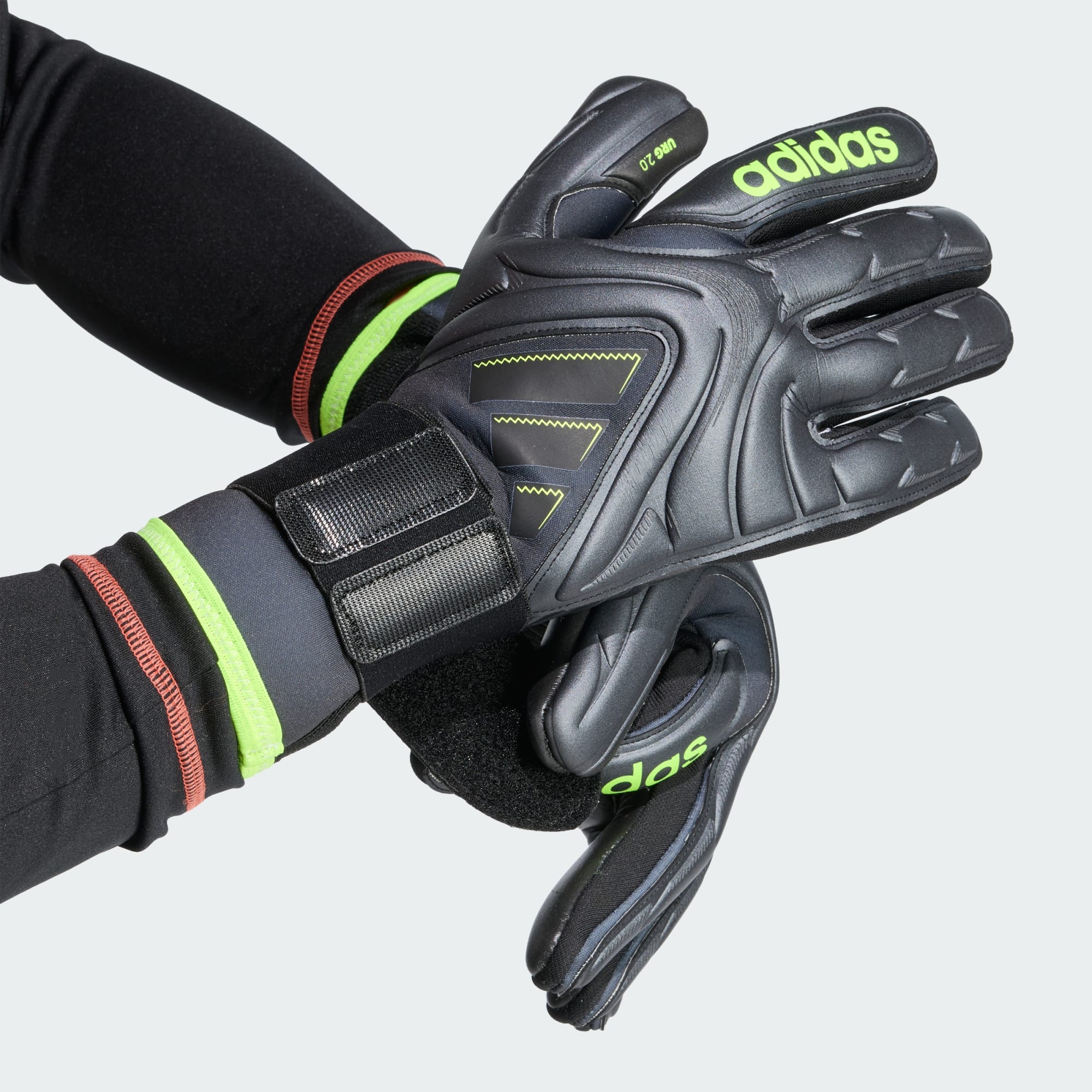 Dal primo all'ultimo fischio, rimani connesso ad ogni partita. Dotati di un dorso ventilato in mesh e lattice e di un palmo con presa URG 2.0, questi guanti da portiere adidas Copa Pro fondono lo stile iconico del calcio con prestazioni innovative. Un cinturino elastico da polsino tiene bloccato durante ogni presa e lancio. Il taglio negativo delle dita garantisce una vestibilità aderente e un feeling naturale.