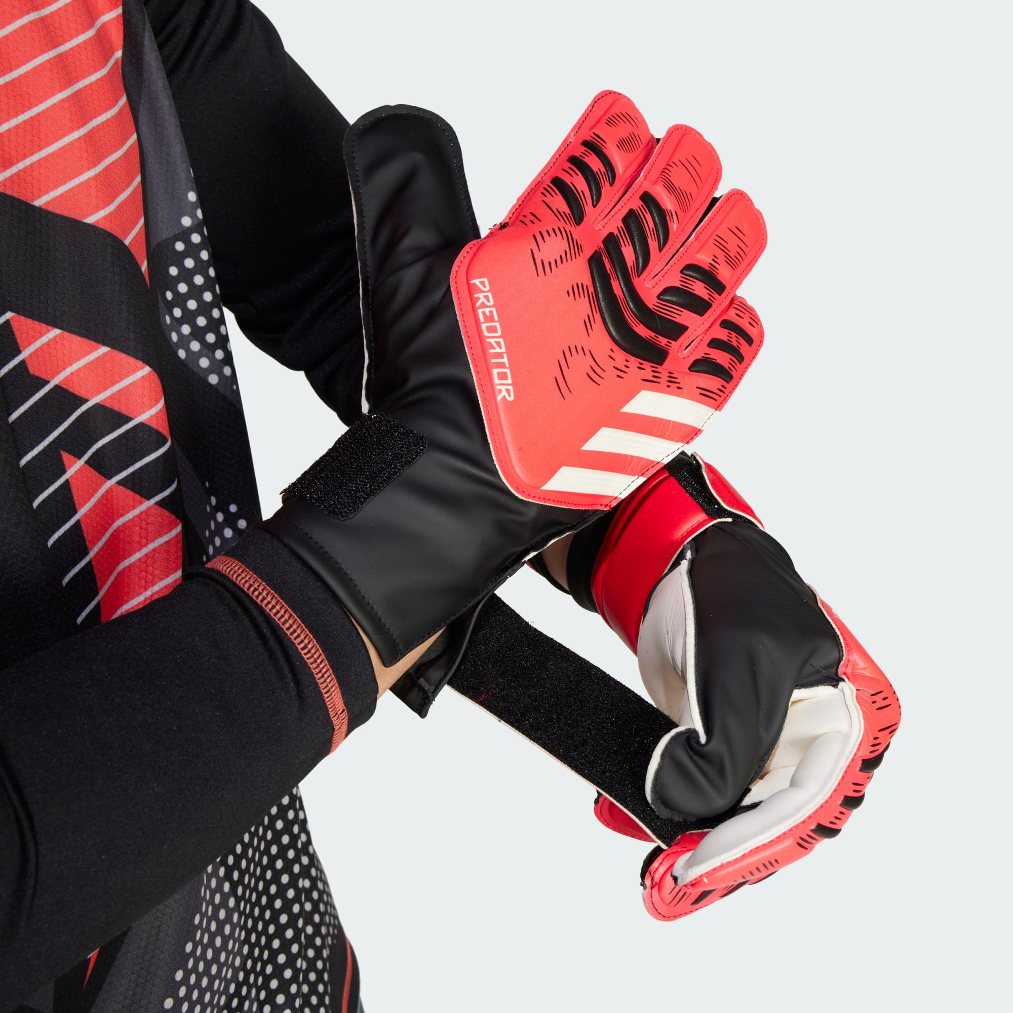 Buttati sulla palla ogni volta con questi guanti da portiere adidas Predator Training in versione. Ideali per perfezionare le tue abilità, presentano un palmo ammortizzato in lattice Soft Grip con dorso flessibile e un taglio ampio nella zona delle dita per aiutarti a mantenere alta la concentrazione colpo dopo colpo. Stringi la fascia elastica per trovare il mix perfetto di stabilità e comfort.