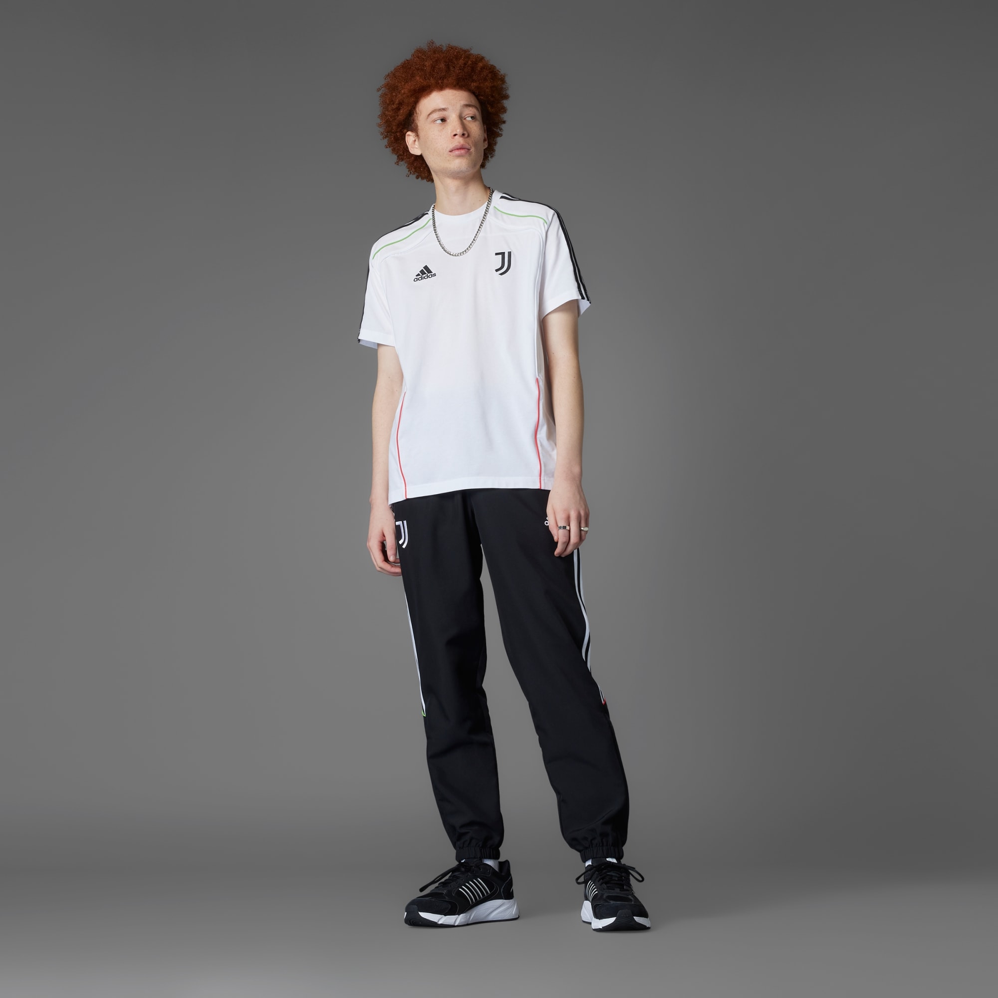 Juventus track pants showing 2010s football style, made with recycled materials.