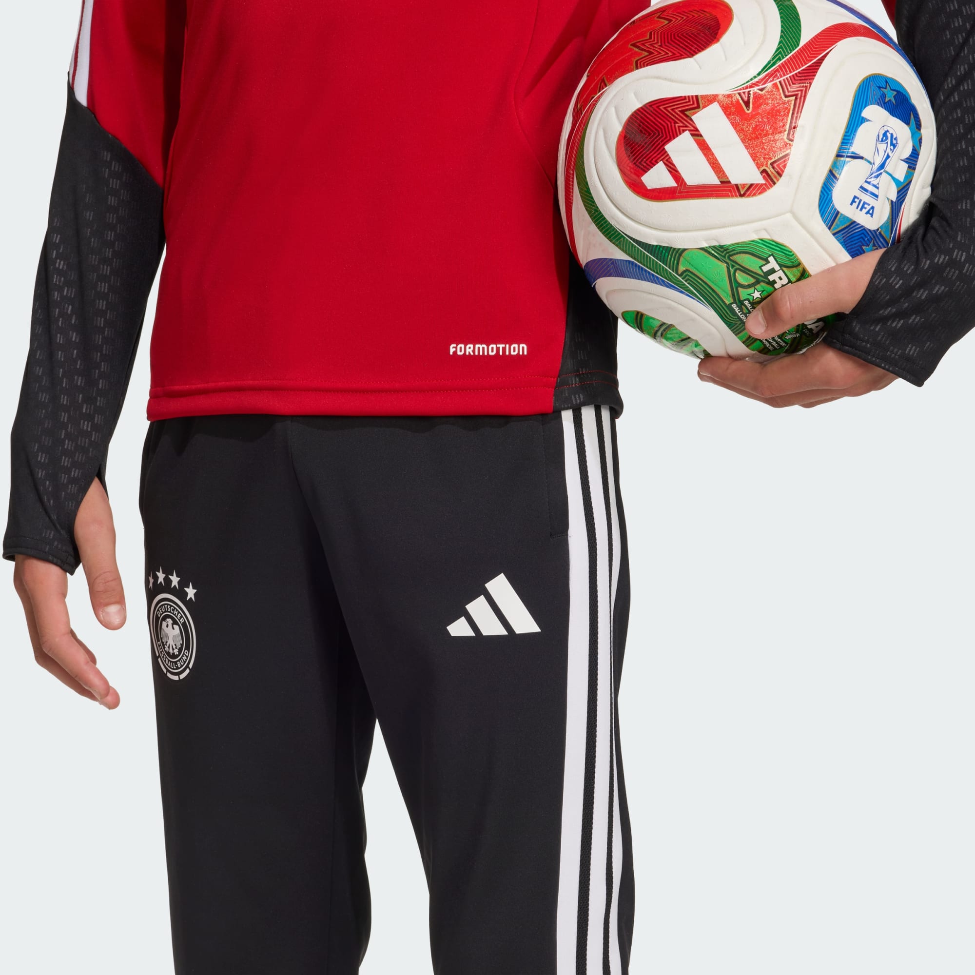 Guardali scendere in campo con fiducia con la Maglia da allenamento Tiro Germania 26. Ispirato al nostro DNA calcistico, questa maglia è pensata per i giovani talenti pronti a esprimere il proprio potenziale. Realizzata con materiali di alta qualità, offre prestazioni e stile dal primo tocco all'ultimo sprint. La sua vestibilità aderente crea una silhouette affusolata che non intralcia, rendendo questa maglia indispensabile per gli allenamenti di calcio più dinamici. È dotata di una raffinata chiusura a zip che la rende facile da indossare e togliere durante le sessioni. L’iconico marchio, che include il nastro a 3 Strisce, aggiunge un tocco di stile in più per i giovani che amano esprimersi. La tecnologia integrata del tessuto Formotion è progettata per offrire libertà di movimento, consentendo di controllare, passare e tirare con agilità e sicurezza. Sia che si esercitino nei dribbling o che segnino gol, questa maglia da allenamento è pronta ad assecondare i movimenti. Scopri il futuro delle prestazioni con adidas e affrontiamo il viaggio insieme.