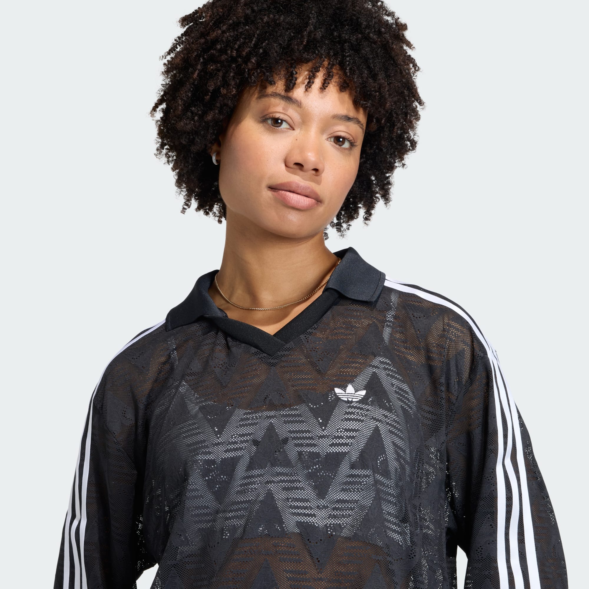La Maglia da calcio in pizzo è il punto di incontro tra sport e stile ed è in grado di dare un tocco di freschezza al tuo guardaroba. Realizzata con intricati pizzi e volant, questa maglia è una vera e propria dichiarazione di stile. Grazie al suo tessuto tricot, questo capo risulta morbido sulla pelle. La sua vestibilità oversize garantisce praticità, offrendo al contempo un look trendy e rendendola un'ottima scelta per chi ama distinguersi. Lo scollo a V le dona uno stile rilassato, per un capo adatto a molteplici occasioni. Indossa il tuo look sportivo con qualcosa in più grazie a questa maglia adidas Originals.