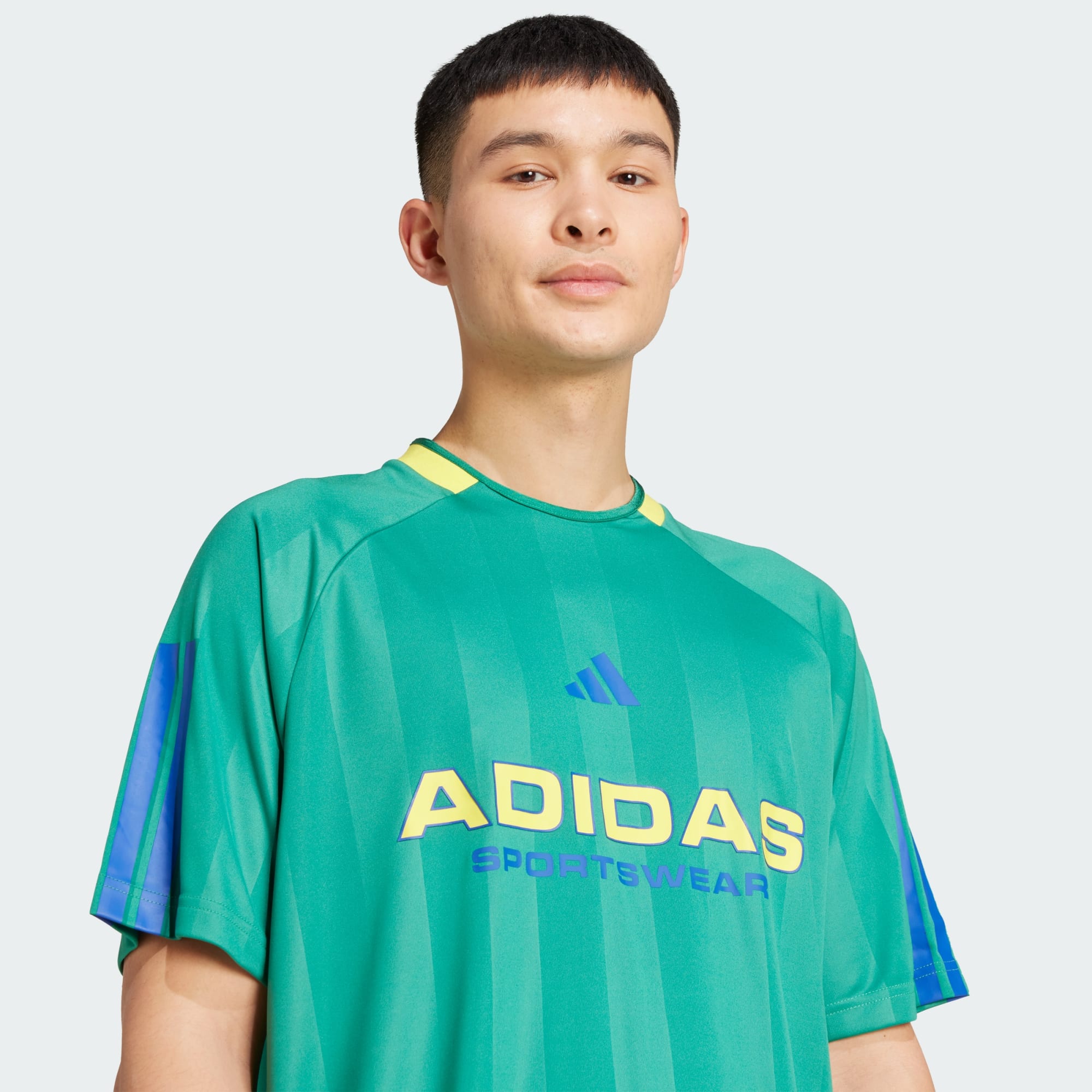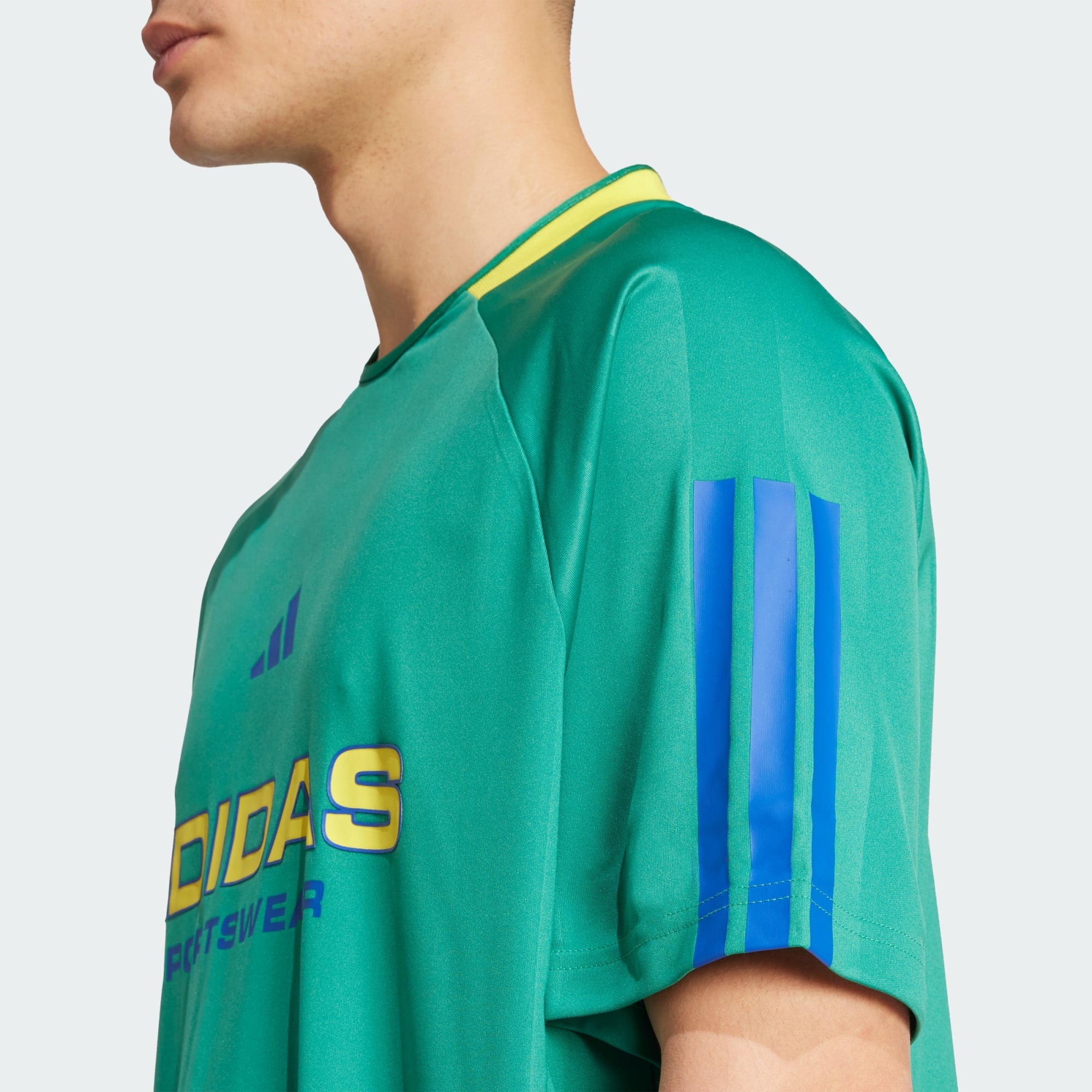 Mostra la tua passione per la squadra del cuore con questa T-shirt di adidas ispirata al calcio. Realizzata per il comfort di tutti i giorni, questa maglia ha l'aspetto del kit della vostra nazionale preferita. Che si tratti di fare il tifo dagli spalti o di mostrare il proprio sostegno in città, questa maglietta vi permette di rappresentare la squadra con orgoglio.