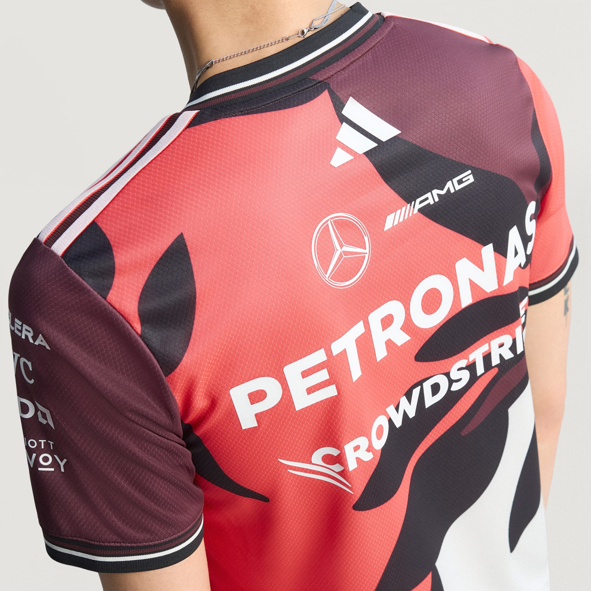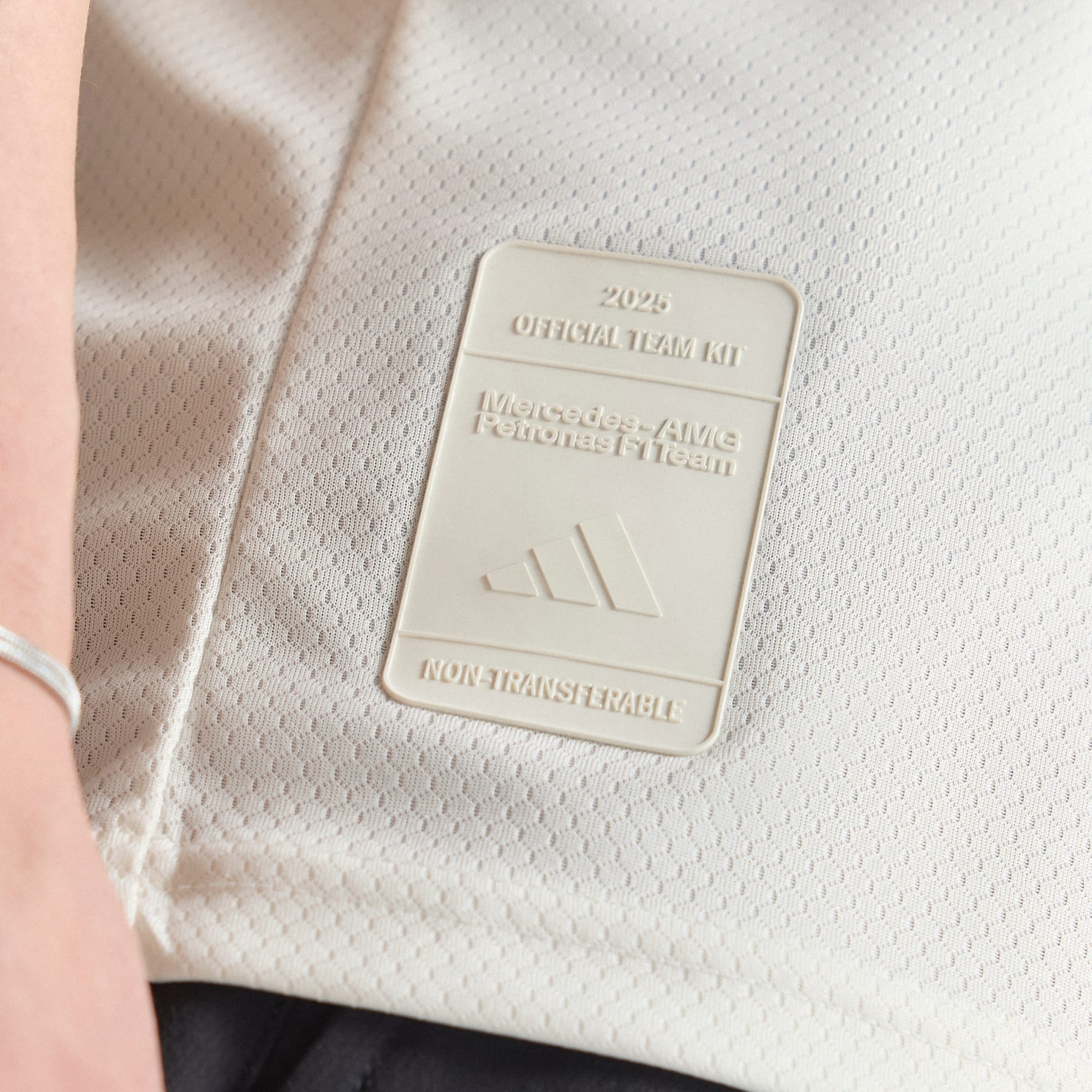 The item was delivered with defects. The prints of logos on the shirt had already peeled off on delivery. The AMG logo and stripes from the Crowdstrike logo were missing entirely. The Petronas and Crowdstrike lettering were still attached, but with the edges already detached from the shirt. The same can be seen for various other logos on the shirt.