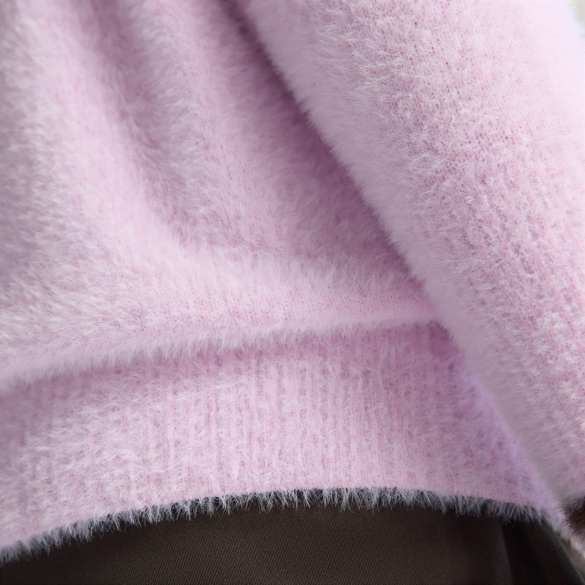 I thought it’s going to be itchy like some fuzzy sweaters are, but this one is really soft! Get your true size, but just a heads-up, the mock neck is a little tight. Other than that, the length of both the sleeves and the sweater itself is perfect - not too short, not too long. Great quality! Pretty pinkish lilac color.