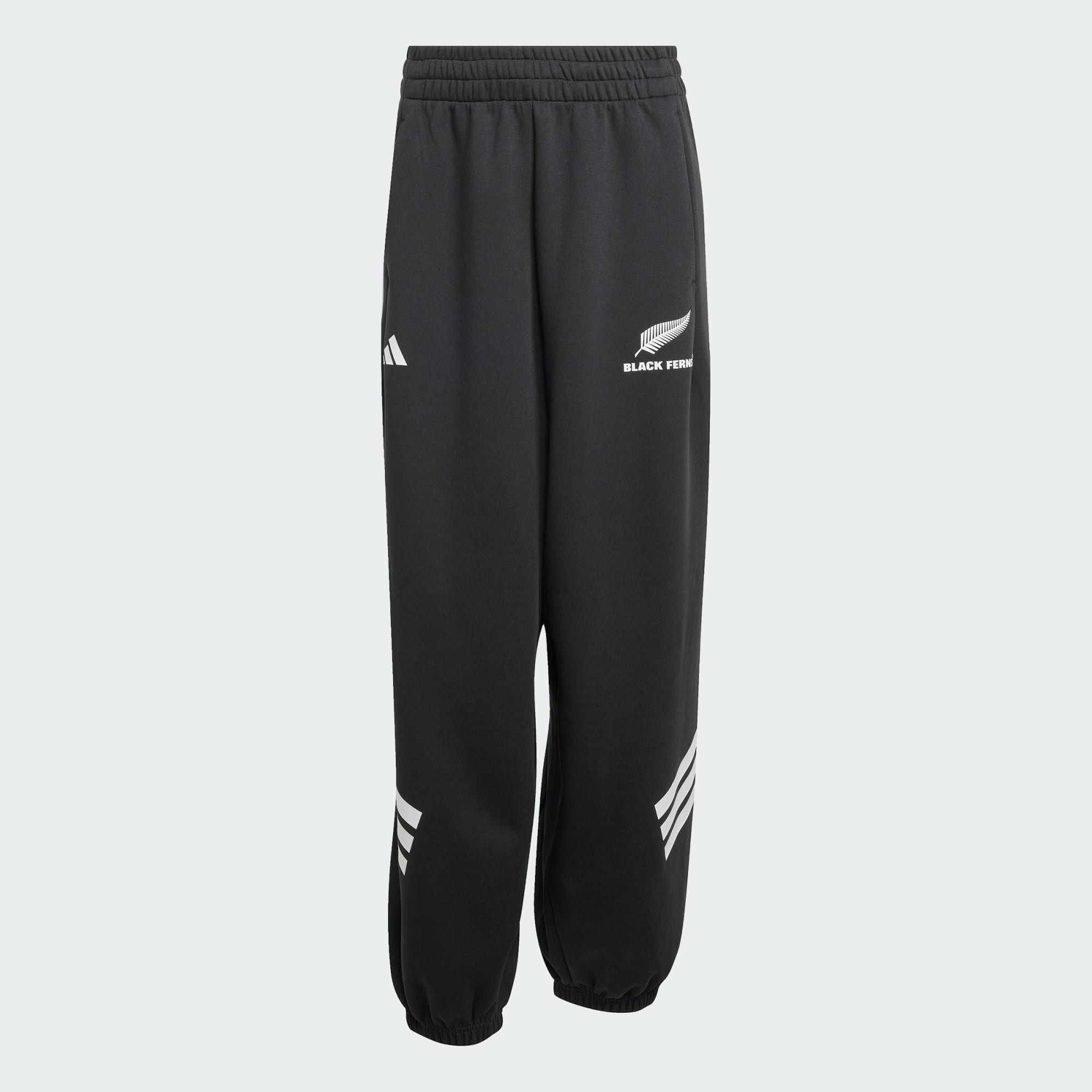 Mostra il tuo sostegno alla leggendaria squadra di rugby femminile della Nuova Zelanda con questi pantaloni adidas. La vestibilità ampia e fluida lascia spazio alla libertà di movimento e il tessuto liscio e pregiato li rende piacevoli da indossare. Una felce argentata sulla gamba mostra il vostro spirito Black Ferns.