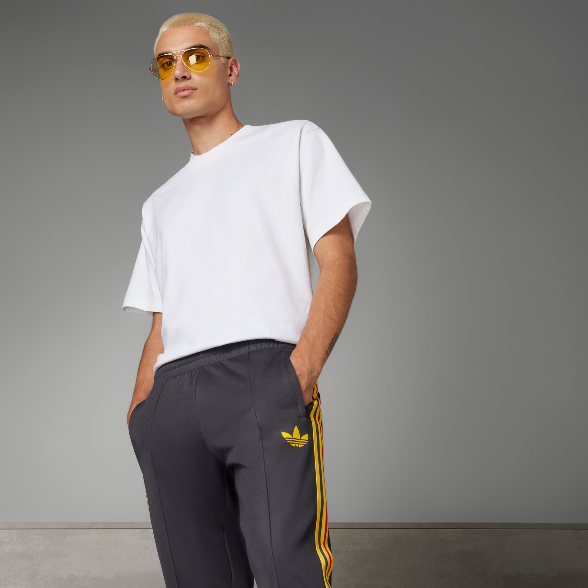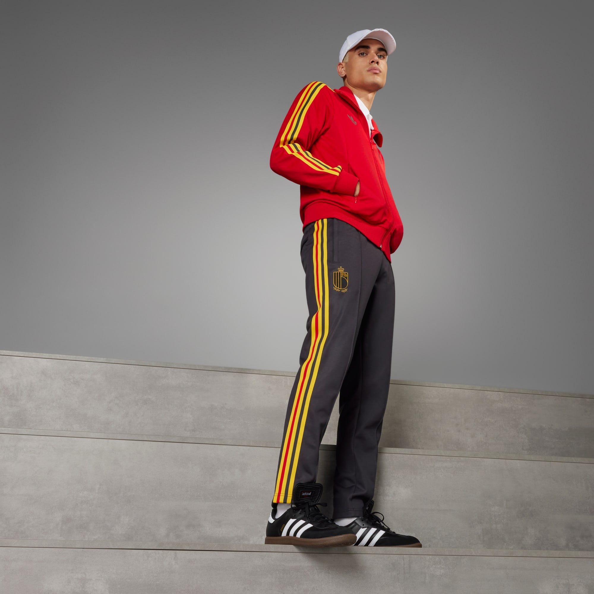 Celebra la storia vincente dei Diavoli Rossi del Belgio con uno stile adidas d'archivio. I pantaloni da allenamento Beckenbauer Belgium uniscono passato e presente per riflettere al meglio la passione delle tifoserie più irriducibili. Realizzati con materiali morbidissimi e caratterizzati da una vestibilità aderente, assicurano un comfort eccezionale e un look sartoriale. Le tasche anteriori con chiusura a zip sono perfette per custodire gli oggetti importanti, mentre la tasca posteriore a filo migliora la praticità. Ribadisci il tuo orgoglio per la Nazionale belga grazie allo stemma della squadra stampato in suede. Scegliere materiali riciclati ci permette di riutilizzare ciò che è già stato creato. Questo ci aiuta a ridurre gli sprechi e i rifiuti, e a diminuire la nostra dipendenza da risorse limitate.