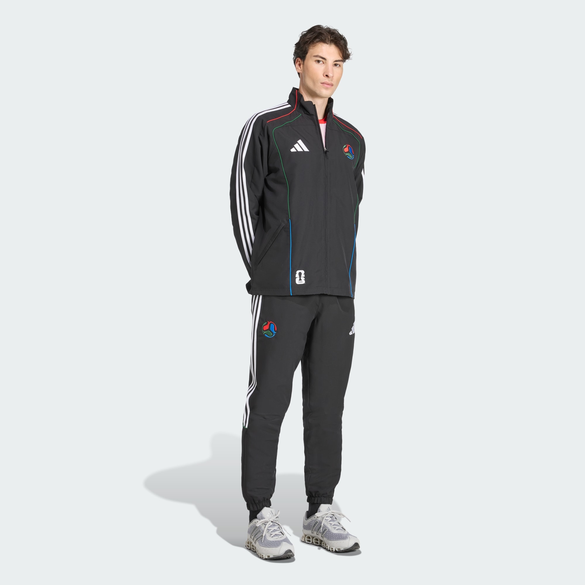Pantaloni da allenamento ospiti è più di un semplice capo di abbigliamento. Questi pantaloni della tuta sono una celebrazione della cultura calcistica, che cattura lo spirito dei Mondiali FIFA 2026. Realizzati in tela con una vestibilità regolare, l’estetica confortevole unisce praticità ed eleganza. La chiusura con cordino regolabile permette di personalizzare l'abbigliamento, rendendo questi joggers una scelta versatile, sia che tu sia in campo o che tu stia mostrando uno stile lifestyle. Con il logo FIFA orgogliosamente esposto sulla gamba destra, questi joggers rendono omaggio ai padroni di casa del Messico, degli Stati Uniti e del Canada integrando perfettamente i loro simboli autentici nell’estetica. Abbraccia una fusione di storia calcistica e moda contemporanea con questi pantaloni della tuta e conta su adidas come compagno per celebrare il bel gioco.