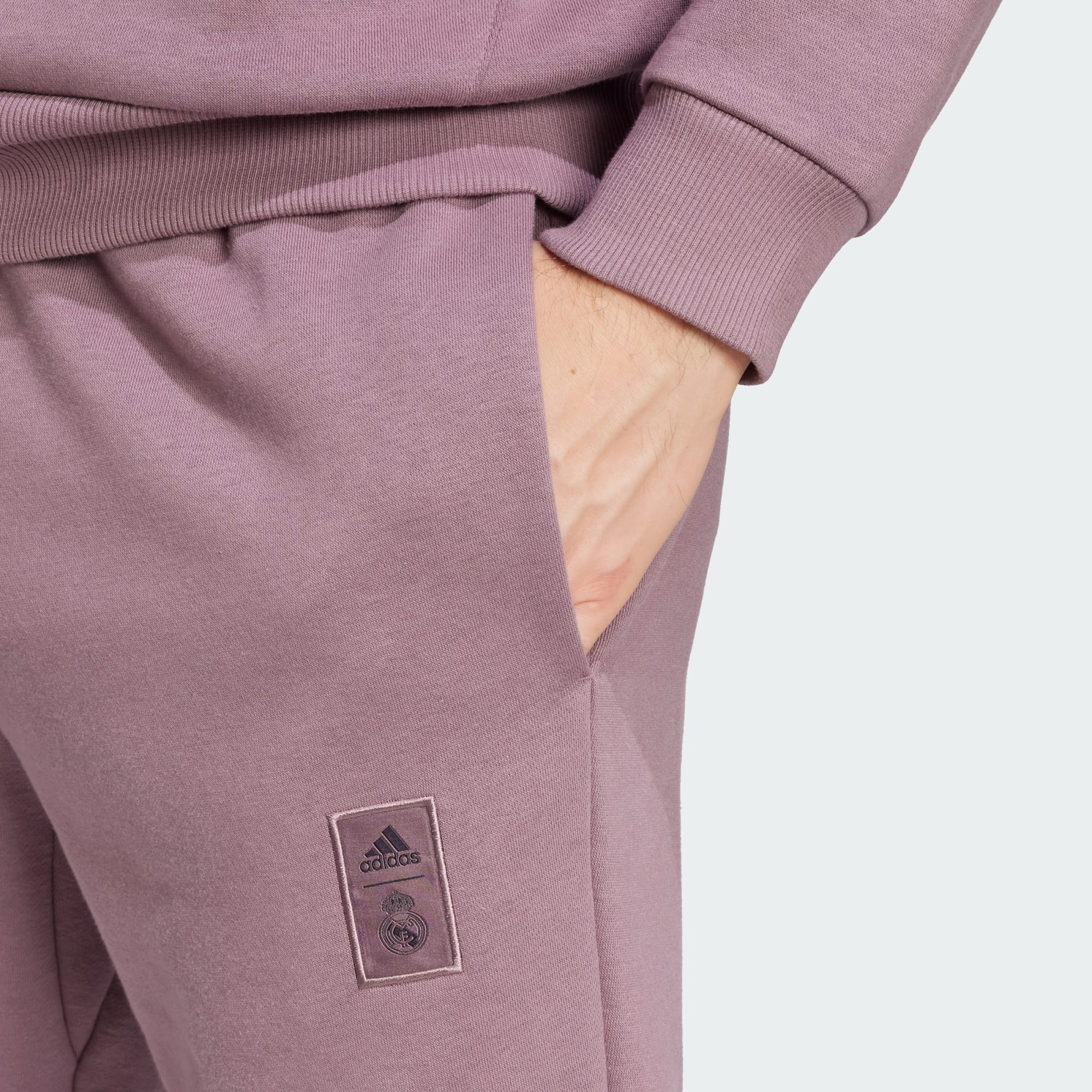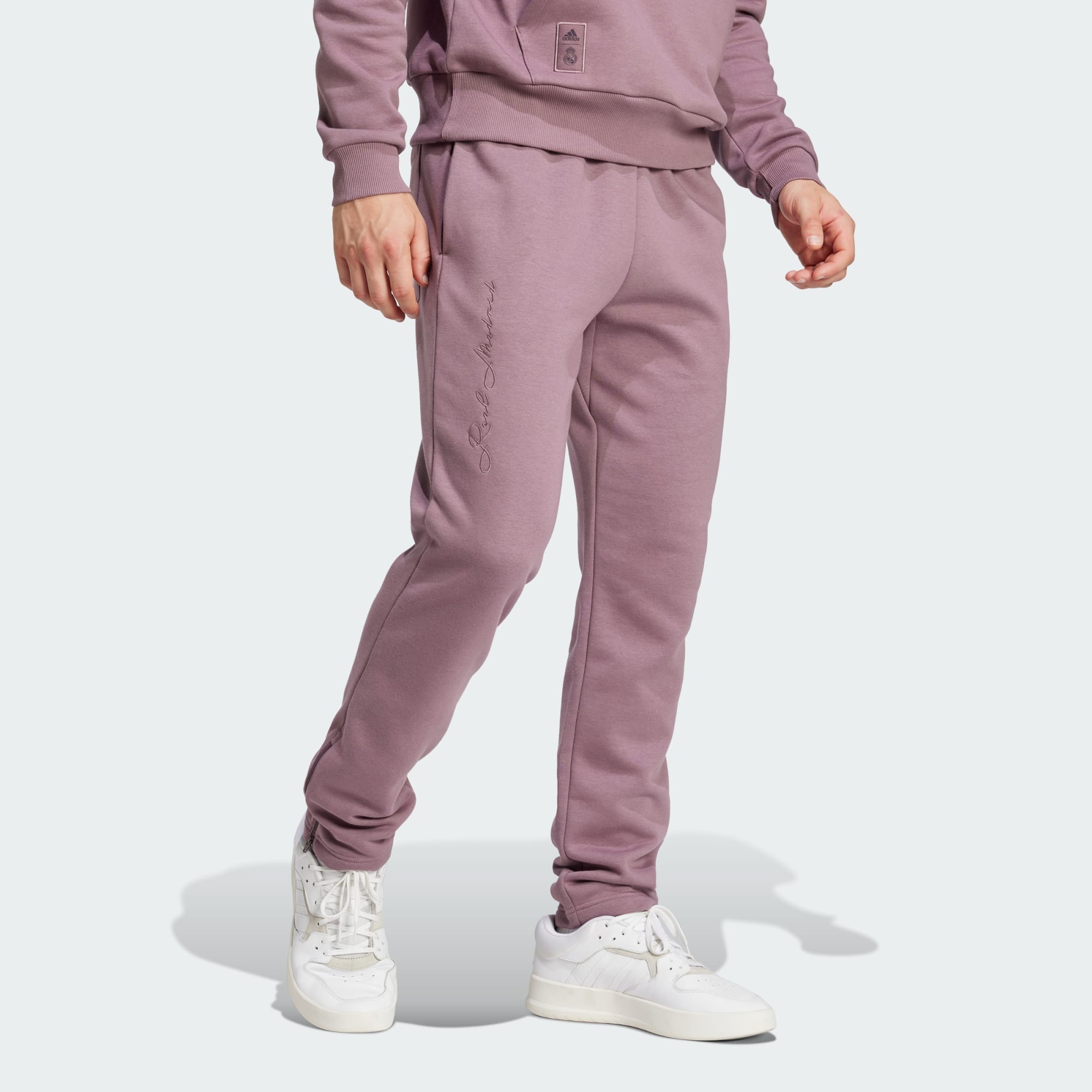 Mostra a tutti la tua passione per il calcio ovunque vai. Questi pantaloni adidas del Real Madrid sono realizzati in morbido tessuto felpo per offrirti il massimo comfort. Le zip mantengono il capo fermo al suo posto, mentre il girovita con cordino ti permette di trovare la vestibilità ideale. Lo stemma del club cucito su una gamba indica chiaramente per chi fai il tifo.