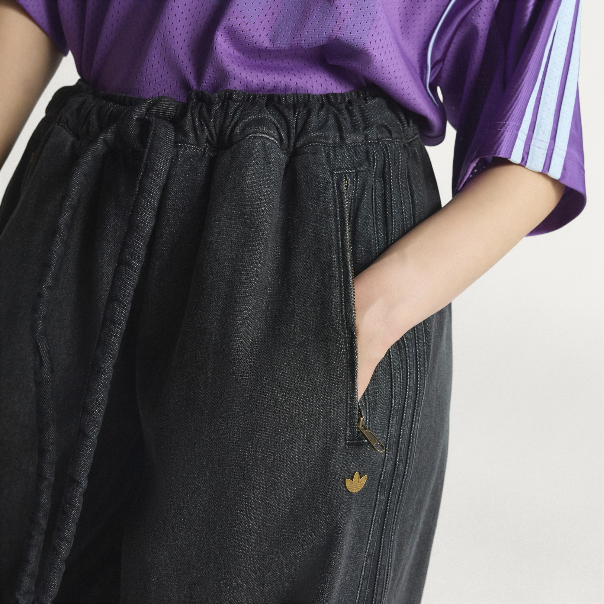 Street style incontra la comodità con i Trackpants in Denim. Realizzati in denim premium, danno un tocco di stile urbano al tuo guardaroba. Pensati con una vestibilità ampia, questi pantaloni della tuta creano un'atmosfera rilassata pur mantenendo una silhouette di stile. La chiusura con cordino garantisce una vestibilità personalizzata. Celebrare lo spirito Originals con questi versatili Trackpants che uniscono un modello contemporaneo a un fascino senza tempo.