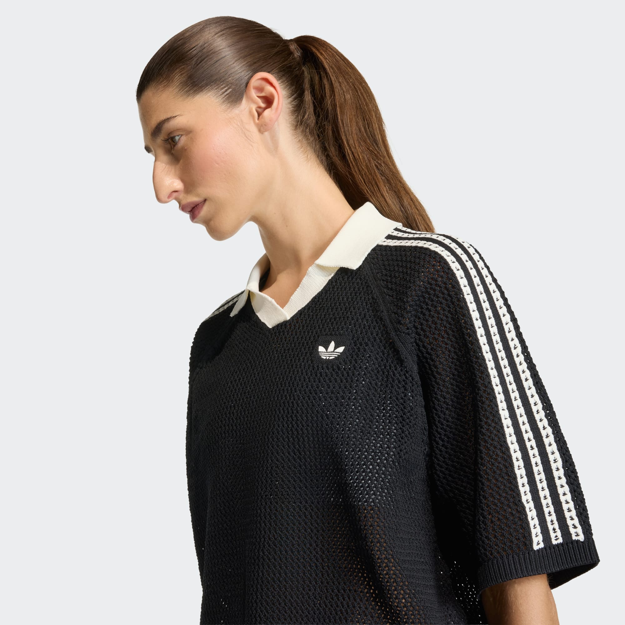 Quando si parla di stile alla moda, la nostra Polo in maglia all'uncinetto è un intramontabile contemporaneo. Combinando magnificamente la nostra gamma sportiva con i modelli all'uncinetto, presenta una nuova interpretazione delle nostre silhouette preferite. Progettata per una vestibilità ampia, questa polo dona un'atmosfera rilassata, mentre lo scollo a V aggiunge un tocco di eleganza e versatilità. Che sia portata in modo di stile o casual, la vestibilità ampia garantisce comfort e facilità. Realizzata con la qualità artigianale di adidas e il nostro amore per i dettagli, questa polo è uno stile senza sforzo. Abbraccia lo spirito Originals con questo pezzo forte. .