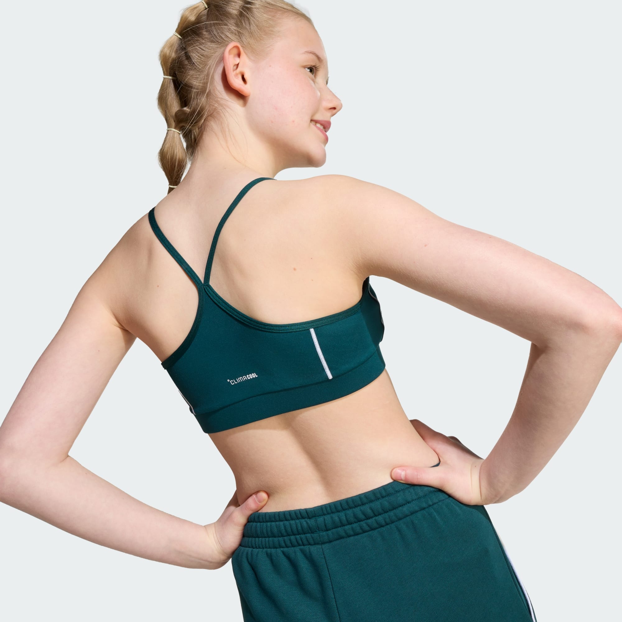 Il tessuto morbido ed elasticizzato di questo reggiseno sportivo adidas Train Essentials per ragazzi e ragazze ti permette di concentrarti e di sentirti a tuo agio durante ogni esercitazione e partita, mentre il supporto medio ti consente di muoverti con sicurezza. Perfetto per la corsa, l'allenamento o lo sport, è progettata per accompagnare in ogni allenamento o sessione di allenamento sul campo o in palestra. CLIMACOOL allontana e disperde il sudore per una performance fresca, asciutta e senza distrazioni. CLIMACOOL ti aiuta a gestire il sudore con materiali che allontanano e gestiscono rapidamente l'umidità. Le sue fibre ad asciugatura rapida donano una sensazione di freschezza sulla pelle.
