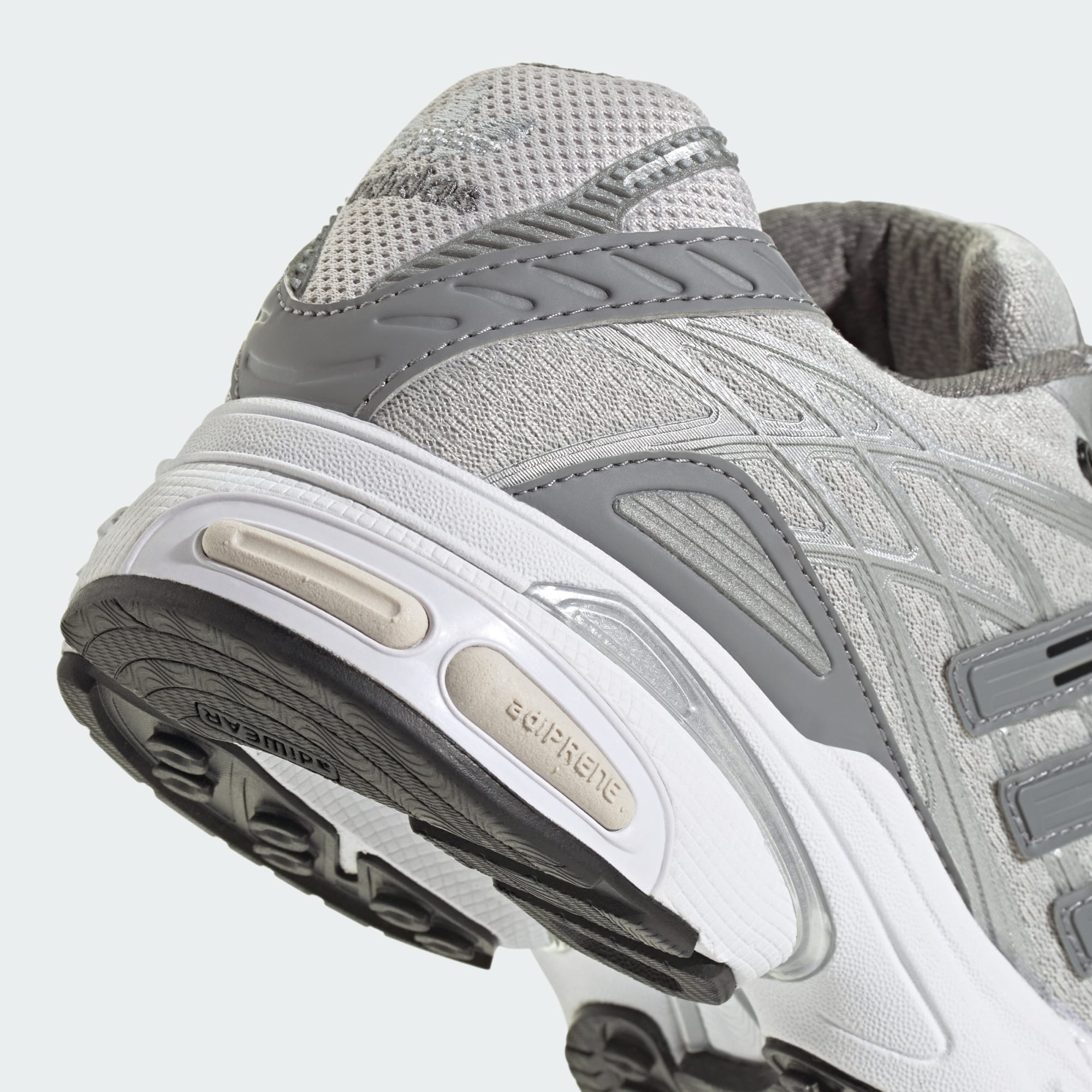 Il look retro-futuristico delle adistar Cushion prende spunto da un iconico modello dei primi anni 2000, aggiornato con una tomaia avvolgente in mesh e dettagli metallizzati per un tocco contemporaneo. I rivestimenti leggermente lucidi e i dettagli metallizzati creano un effetto shine. L'intersuola adiprene assicura un'ammortizzazione reattiva per farti sentire a tuo agio in ogni situazione.