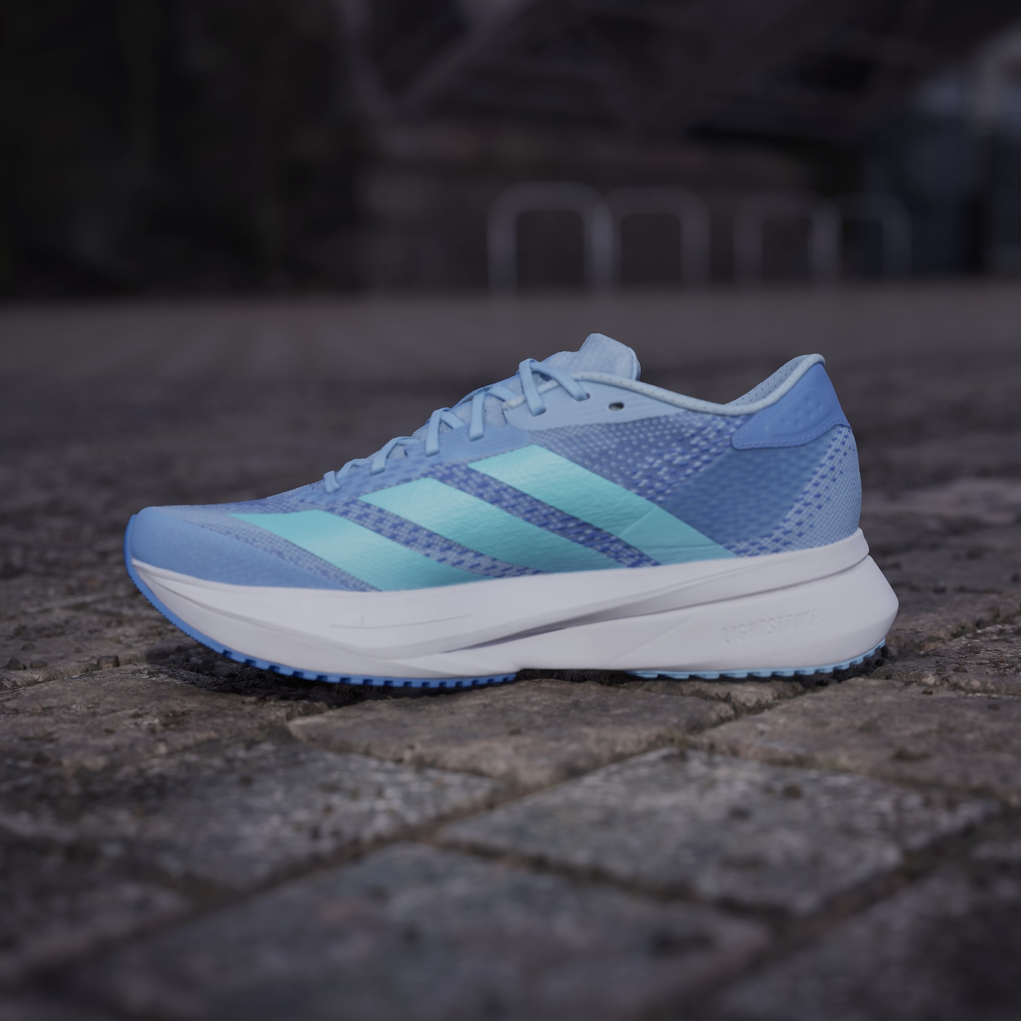 Se volete diventare più veloci e andare più lontano, queste scarpe da corsa adidas sono ciò che volete ai vostri piedi. Sono leggere e veloci, con una tomaia in mesh traspirante che aiuta a mantenere i piedi freschi e un'intersuola Lightstrike e Lightstrike Pro che fornisce un ritorno di energia di lunga durata. Mentre inseguite i vostri obiettivi, la suola in gomma aderente aiuta a mantenere i vostri passi sicuri.