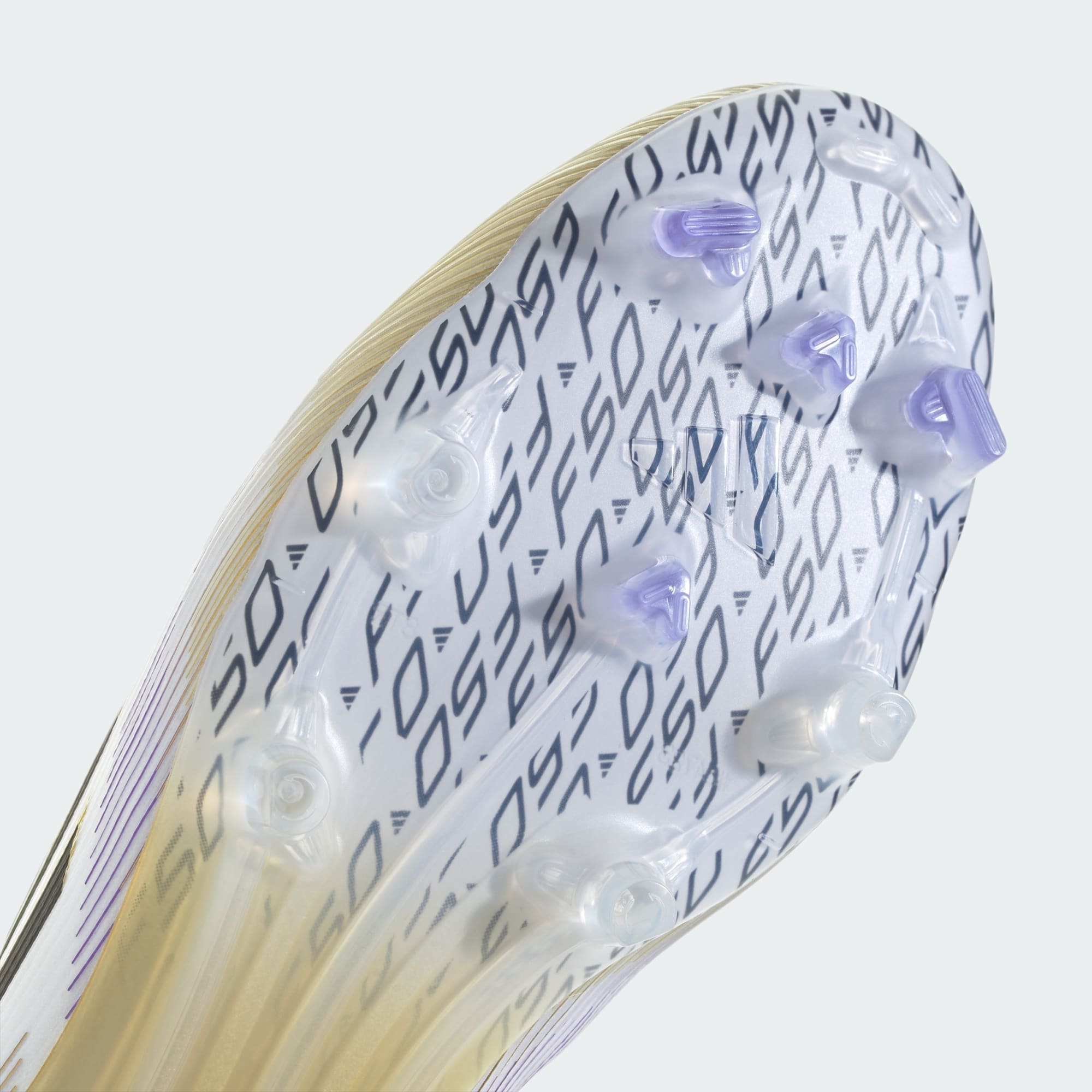 Esprimi tutta la tua personalità in campo. Vivi la velocità allo stato puro con le adidas F50. La leggera tomaia Fibertouch di queste scarpe da calcio Pro è dotata di texture Sprintweb 3D per mantenere il pallone incollato al piede, e di una linguetta Compression Fit Tunnel per una calzata stabile. La suola Sprintshell 360 garantisce azioni fulminee sull'erba asciutta.
