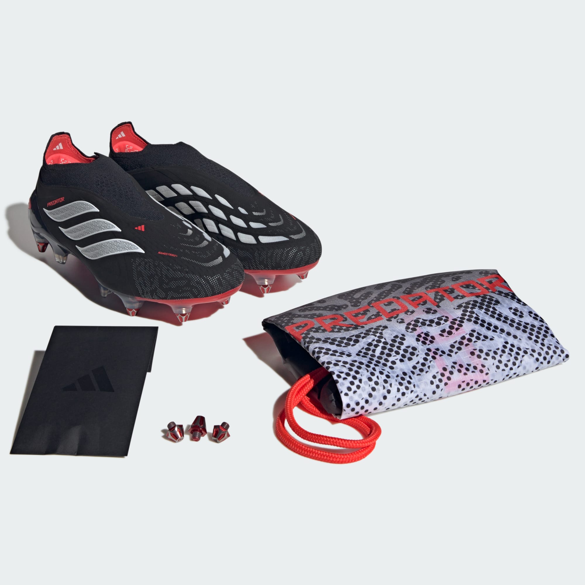 Gioca con sicurezza con le scarpe da calcio Predator Elite Laceless Soft Ground. Progettate per chi osa dominare, ti aiutano a prendere il controllo davanti alla porta. La tecnologia Nanostrike+ combina un mesh innovativo, che offre morbidezza e leggerezza impalpabile, a elementi in gomma integrati per un grip ottimale, assicurando precisione nei tiri in condizioni sia di asciutto che di bagnato. Il modello senza lacci offre una calzata essenziale e aderente, che ti permette di concentrarti sul gioco senza distrazioni. Le scarpe sono realizzate anche con materiale Primeknit tecnico che offre benessere e si adatta alla forma del piede. Inoltre, la piastra Strikeframe a tutta lunghezza potenzia il grip per andare a segno, mentre i tacchetti SG Lite hanno una innovativa forma esagonale che riduce il peso pur mantenendo elevati livelli di trazione. Consigliate da calciatori professionisti, queste scarpe da calcio adidas sono la tua chiave per tirare con potenza. Falle diventare le tue calzature preferite per scendere in campo.