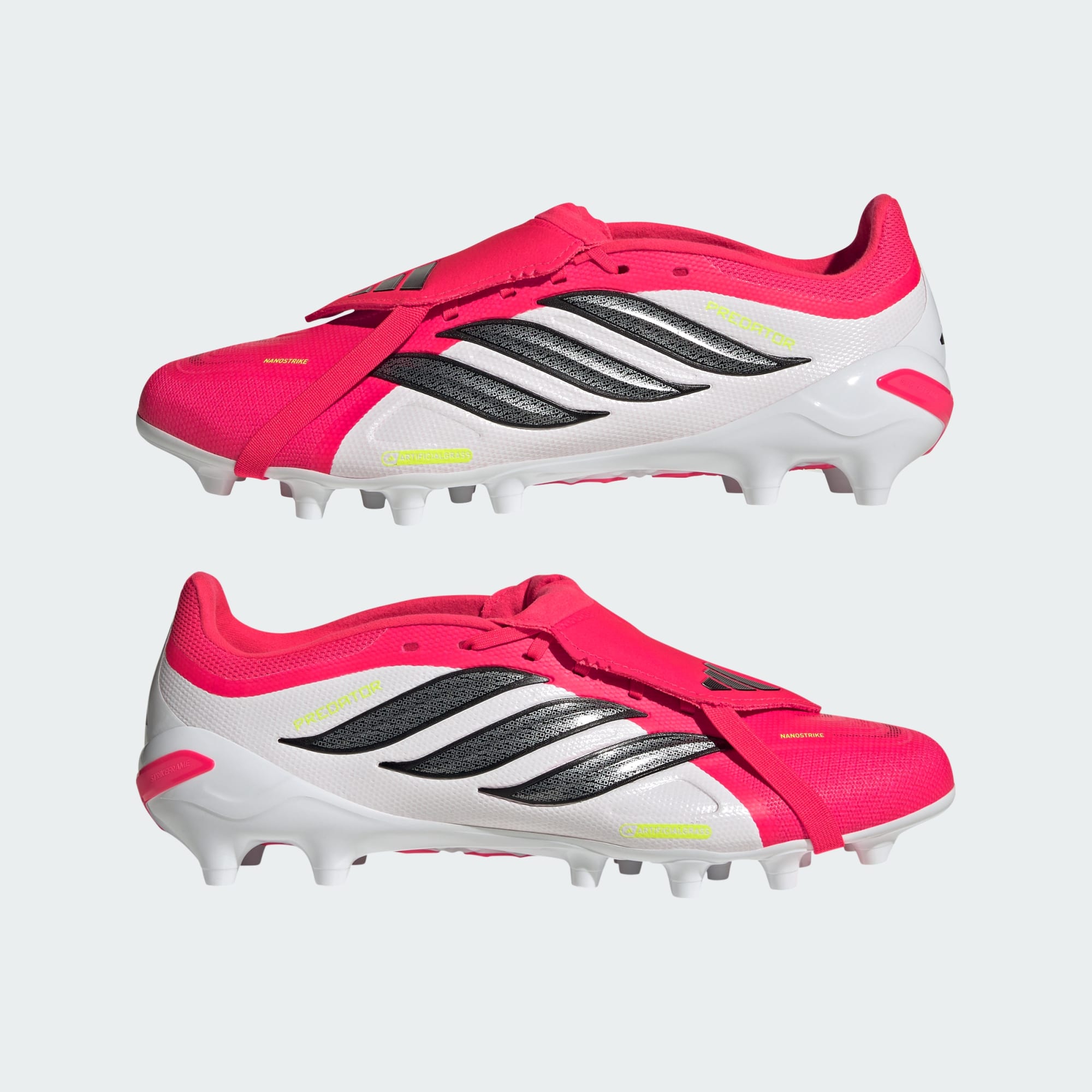 Con queste scarpe da calcio Predator League, dotate di linguetta ripiegabile e ideali per l'erba artificiale, avrai sempre la porta nel mirino. Pensate per chi pretende la massima precisione, presentano una tomaia Nanostrike con morbido mesh e un'estetica studiata per migliorare il grip sul pallone. La tecnologia Powerspine garantisce stabilità e potenza nella zona dell'arco plantare, permettendoti di sferrare tiri ancora più forti. Sotto, la suola sintetica assicura un'ottima trazione sulle superfici in erba artificiale. Inoltre, la leggendaria linguetta ripiegabile, che richiama la tradizione calcistica adidas, crea una superficie d'impatto uniforme, evitando che i lacci interferiscano con il tuo tiro perfetto.