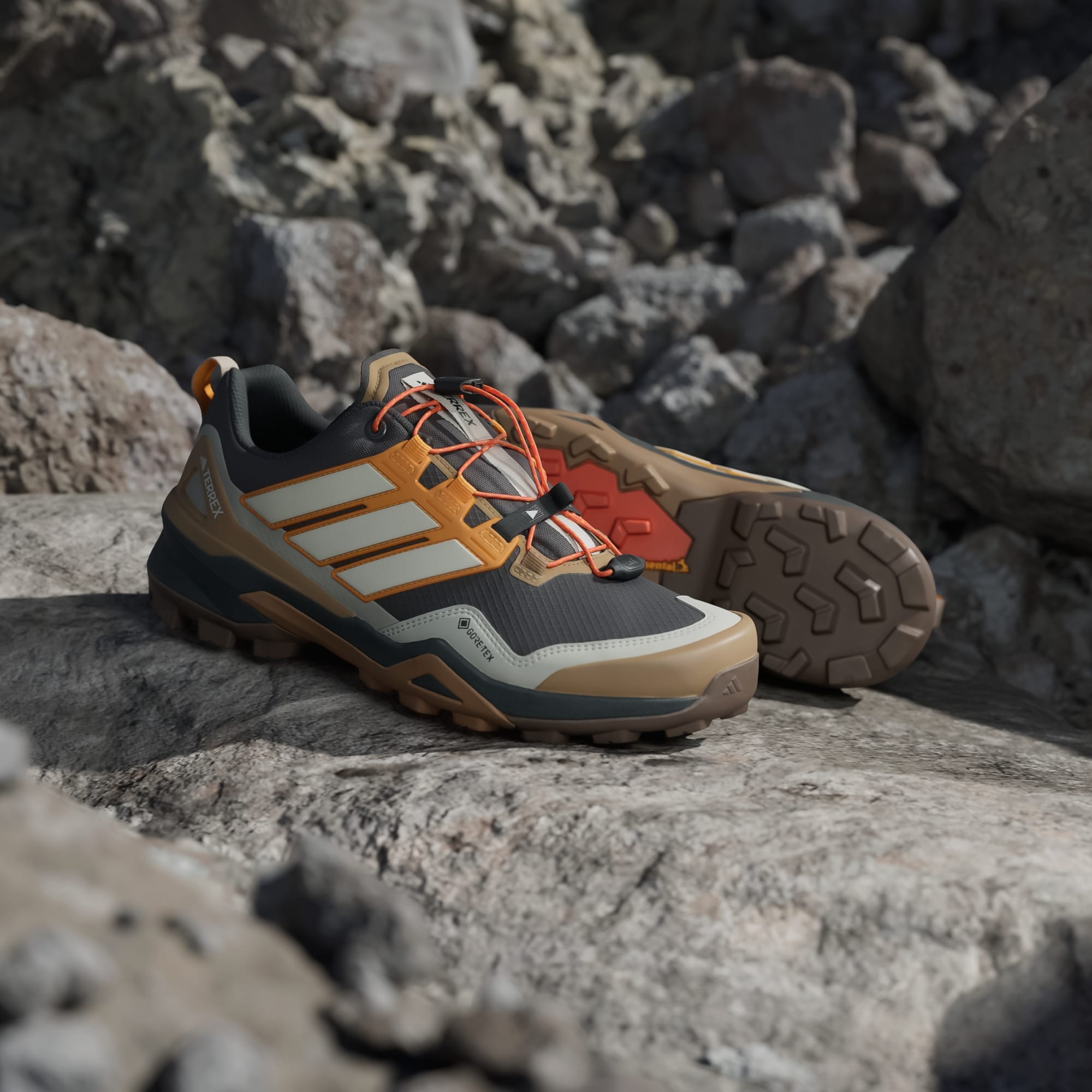Progettate per le escursioni in montagna e le arrampicate più impegnative, queste scarpe da hiking adidas Terrex Skychaser offrono un equilibrio perfetto di protezione, controllo e comfort per muoverti velocemente sui sentieri e non solo. Uniscono la sensazione di agilità e reattività delle scarpe da trail running al supporto e alla resistenza delle scarpe da hiking. Il comfort immediato e la struttura leggera ti aiutano a concentrarti al massimo sul percorso. La membrana impermeabile in GORE-TEX EPE protegge dalle intemperie e lascia respirare il piede offrendo una gestione ottimale della temperatura. La tomaia in ripstop con rivestimenti antiabrasione assicura leggerezza e resistenza. La suola versatile in gomma Continental™ fornisce un grip ottimale su qualsiasi superficie, anche sul bagnato. L'ammortizzazione Lightstrike ultraleggera garantisce reattività e agilità.