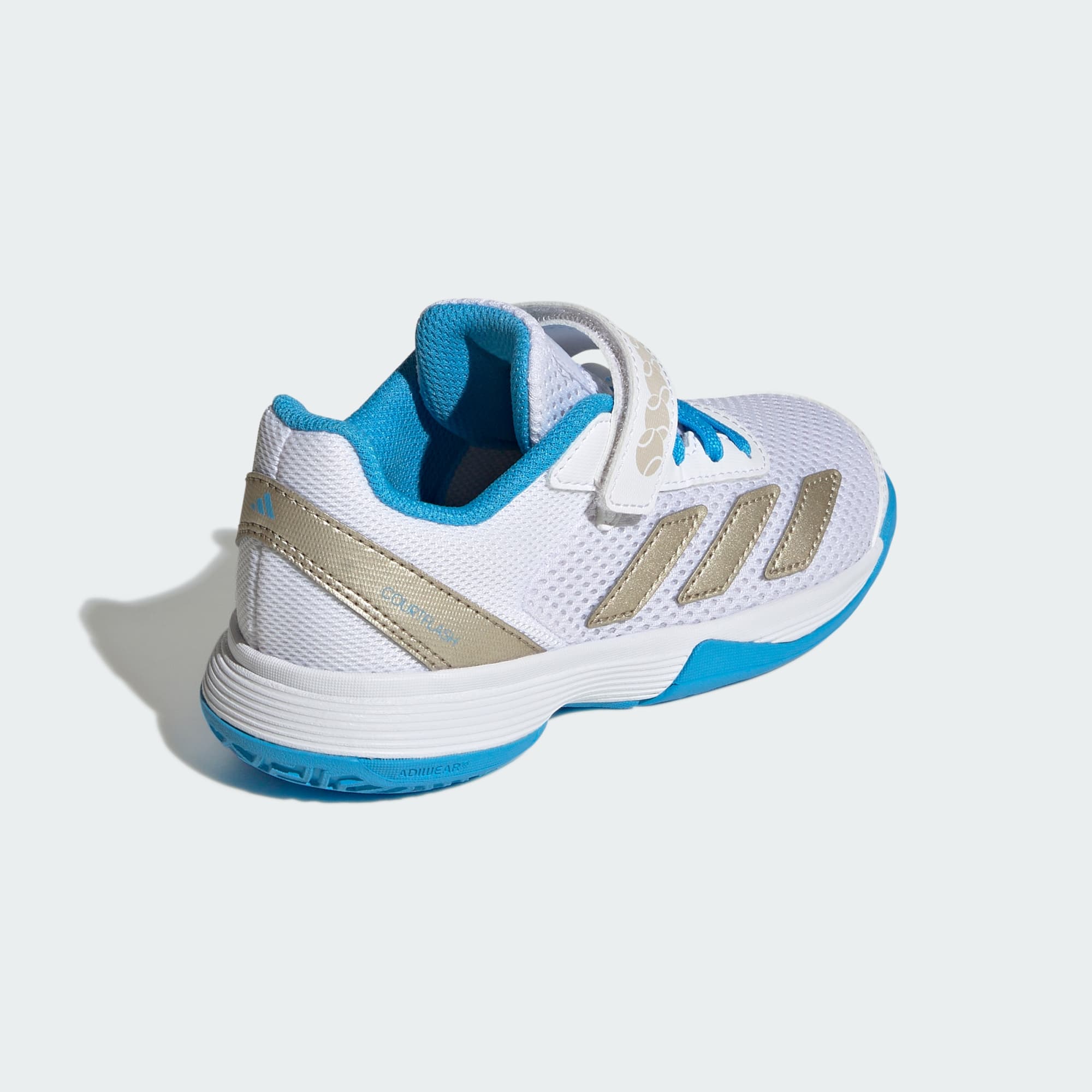 Quando si vuole alzare il ritmo sul campo da tennis, c'è bisogno di scarpe leggere che offrano un supporto ottimale. La tomaia in mesh traspirante di queste scarpe adidas Courtflash per bambini e bambine è dotata di allacciatura e chiusura a strappo per una calzata stabile e veloce. La robusta suola adiwear resiste anche ai cambi di direzione più rapidi su diversi tipi di superficie.