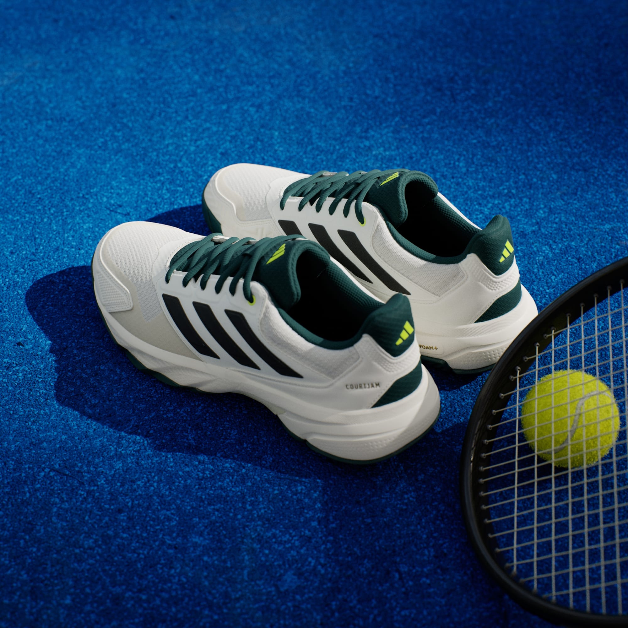 Rischia il tutto per tutto a ogni punto. Queste scarpe da tennis adidas sono progettate per resistere all'usura e massimizzare la circolazione dell'aria. Il rinforzo adituff sulla punta dona protezione, mentre la tomaia in mesh assicura leggerezza e traspirabilità. Il supporto del piede e l'ammortizzazione Bounce leggera favoriscono cambi di direzione rapidi, sicuri e precisi. La suola divisa con motivo a spina di pesce ottimizza il tuo gioco sulle superfici dure, offrendoti un vantaggio decisivo durante le partite più intense. Questo prodotto contiene almeno il 20% di materiali riciclati. Implementare la nostra produzione con materiali riciclati ci permette di ridurre gli sprechi, l'utilizzo di fonti non rinnovabili e l'impatto ambientale dei prodotti che produciamo.