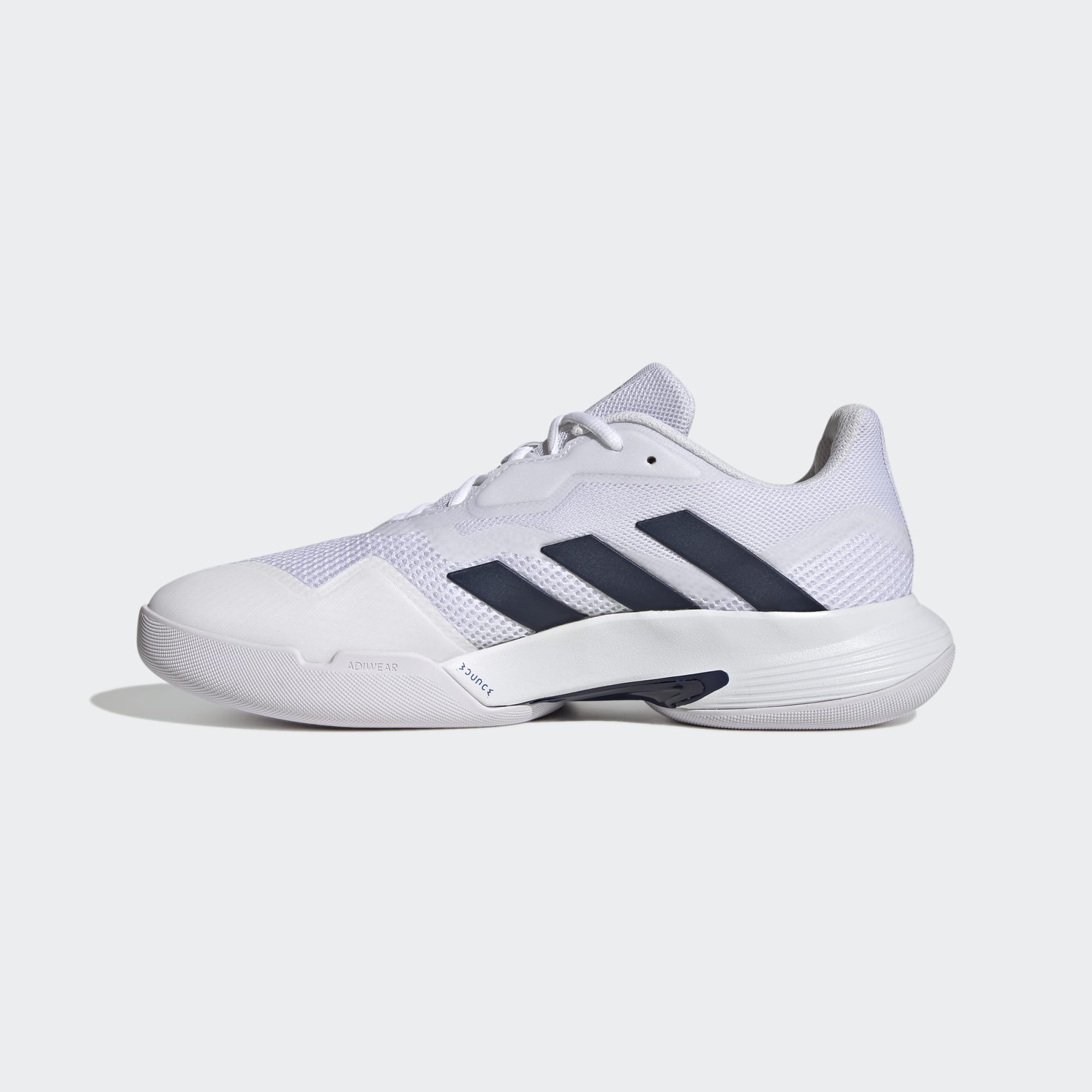 Domina il match. Create per le superfici in tappeto sintetico, queste scarpe da tennis adidas CourtJam Control assicurano prestazioni e competitività grazie alla tomaia in open mesh traspirante e all'intersuola Bounce flessibile. La tecnologia Torsion System nell'arco plantare ti permette di controllare le scivolate e gli altri movimenti laterali. La zona adituff è stata progettata appositamente per il piede maschile, per un gioco libero e naturale.