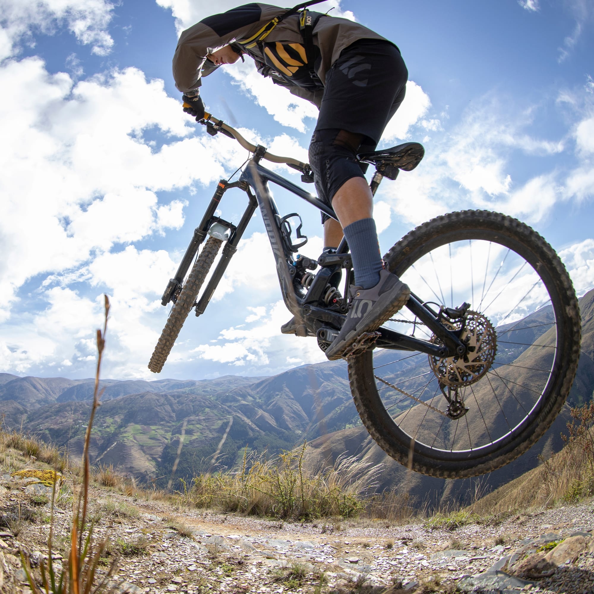 Scarpe da mountain bike leggere e traspiranti realizzate in parte con materiali riciclati.