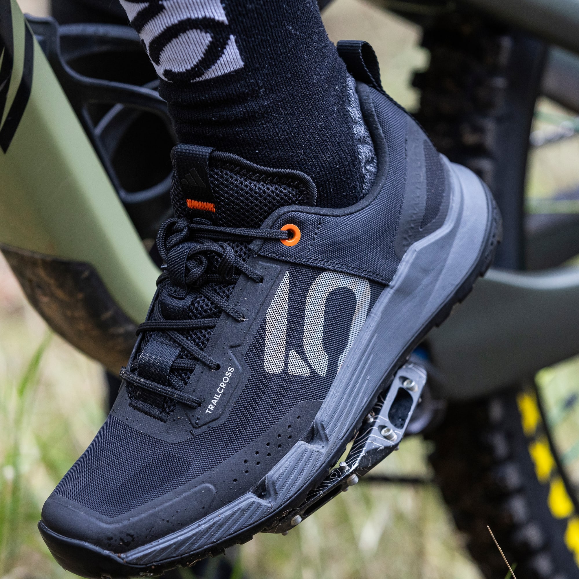 Progettate per le tue avventure in bici, le scarpe da mountain bike adidas Five Ten Trailcross LT sono leggere e traspiranti. La struttura rigida assicura una pedalata efficiente, mentre l'avampiede flessibile garantisce il massimo comfort quando vai a piedi. La suola in gomma Stealth Phantom con motivo Dotty offre un controllo ottimale sui pedali, i dettagli extra su punta e tallone assicurano un grip eccellente su ogni tipo di terreno. La tomaia in mesh traspirante e il sistema di drenaggio dell'acqua mantengono i piedi asciutti, la punta rinforzata migliora la sicurezza sui terreni più impervi. L'intersuola ammortizzata rende più piacevole la tua avventura, sia in sella alla tua bici che quando prosegui a piedi. Un ultimo controllo ai lacci e che l'esplorazione abbia inizio. Questo prodotto contiene almeno il 20% di materiali riciclati. Implementare la nostra produzione con materiali riciclati ci permette di ridurre gli sprechi, l'utilizzo di fonti non rinnovabili e l'impatto ambientale dei prodotti che produciamo.