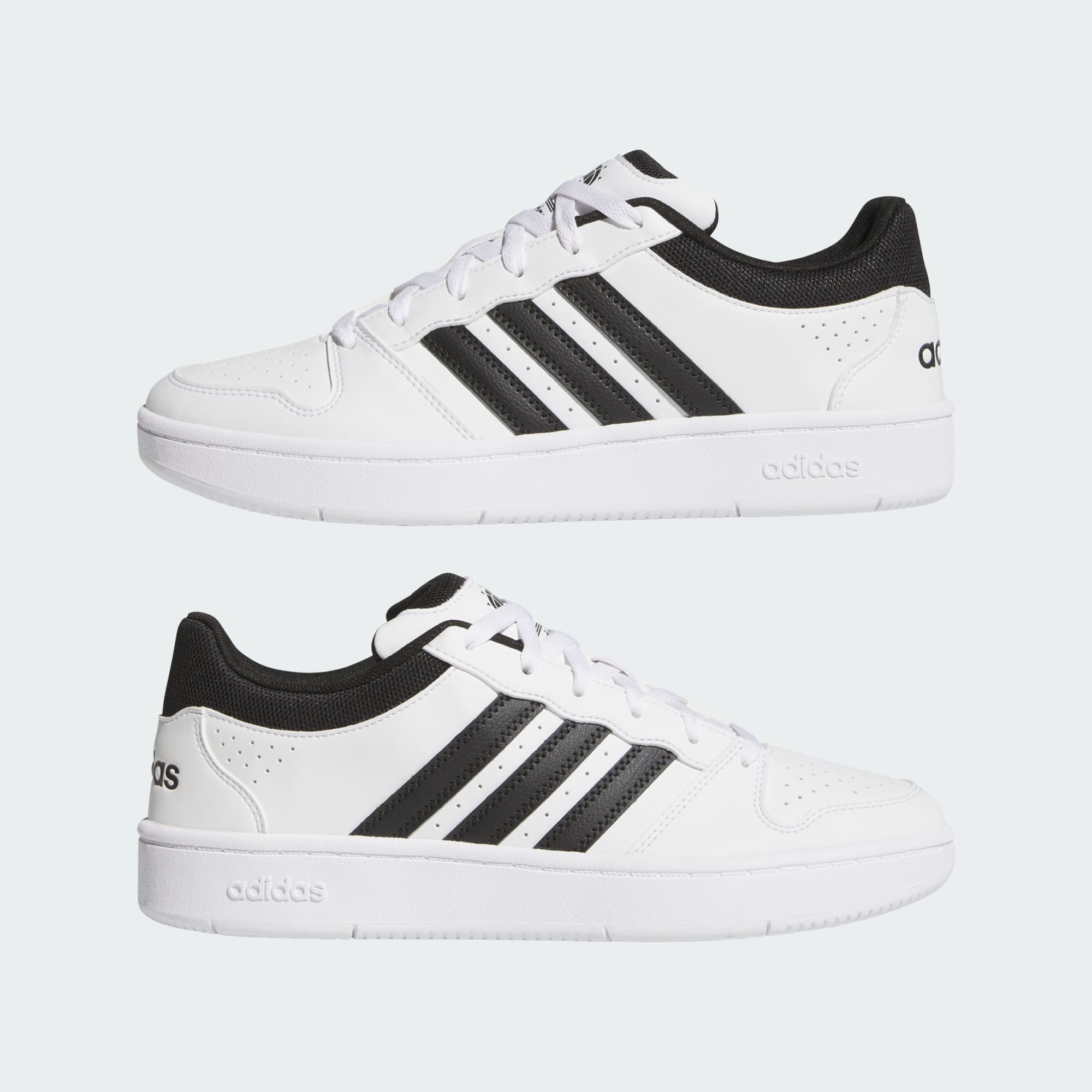 Firmate con le linee geometriche e pulite delle iconiche 3 strisce adidas, queste scarpe incarnano lo spirito del basket in una versione audace e contemporanea.