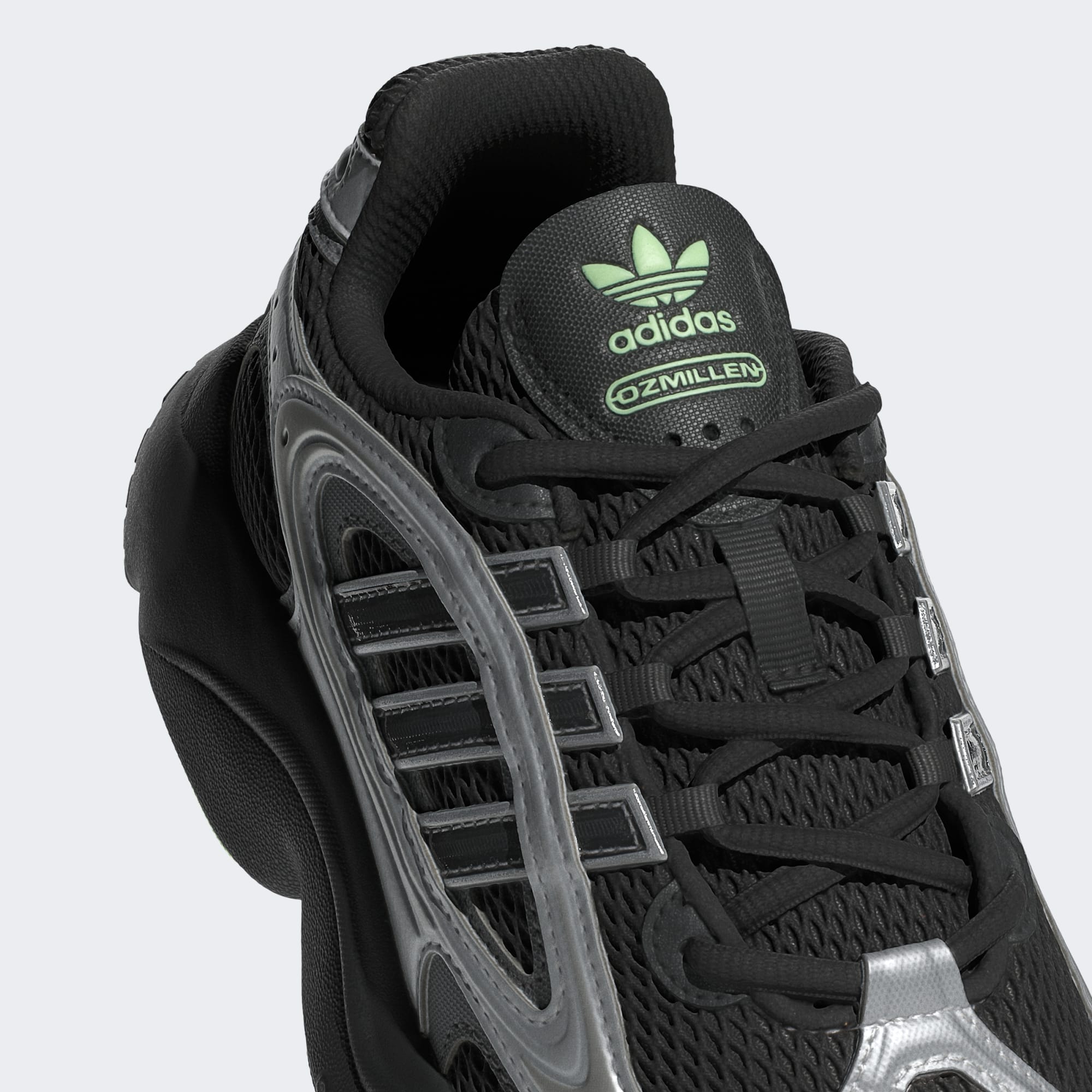 Dedicate alle pensatrici libere che creano da sé la propria strada, le adidas OZMILLEN sono ispirate alla silhouette delle rivoluzionarie scarpe da running Ozweego degli anni '90. La linguetta in mesh, la forma iconica della punta e le 3 strisce in TPU che sbucano dal pannello laterale caratterizzano il look. I rivestimenti e i profili riflettenti in mesh e materiale sintetico aggiungono un tocco futuristico. L'ammortizzazione assicura una morbidezza eccezionale, così puoi affrontare la giornata con stile e il feel giusto.