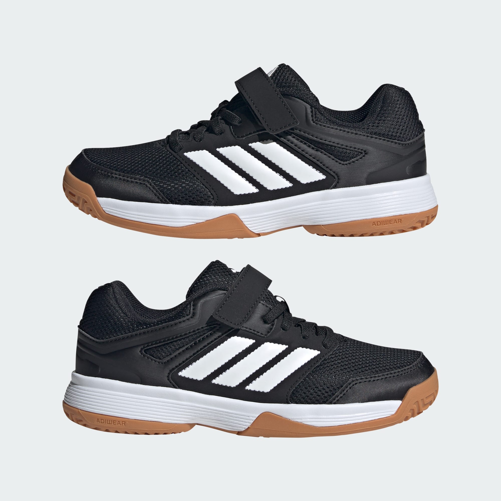 Guardali volare sul campo con queste scarpe da indoor adidas. Dotate di una suola in gomma grip, permettono di tenere il passo dei giovani giocatori più veloci. La tomaia in mesh ventilato fa sì che le scarpe rimangano fresche, mentre la combinazione di lacci e cinturini garantisce una chiusura confortevole. Appoggiata su una suola Adiwear con grip, la morbida EVA ammortizza ogni salto e sprint.