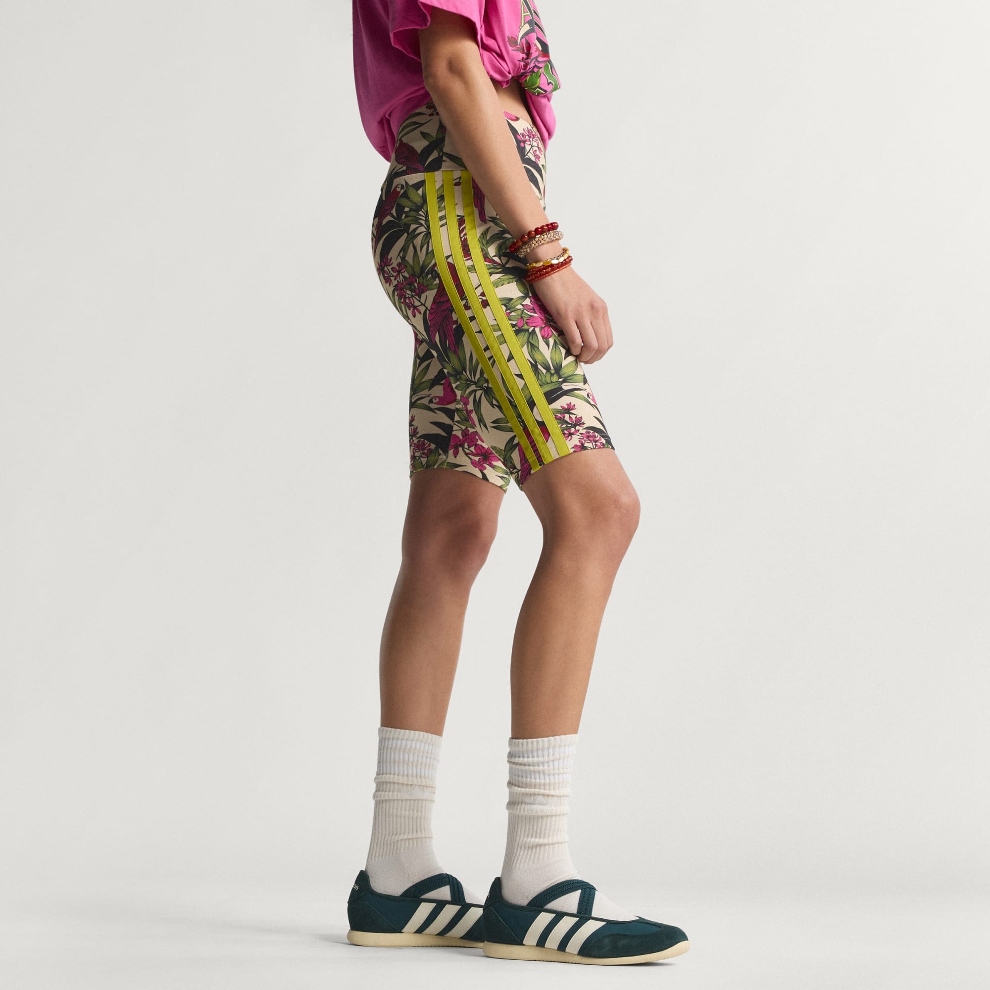 I SHORT ADIDAS x FARM RIO BIKE sono pensati per chi abbraccia la vita con un tocco di colore. Ispirati alla cultura dei campi da basket cittadini, questi pantaloncini fondono l'estetica tropicale di FARM RIO con il nostro leggendario DNA. Realizzati in morbido tessuto single jersey, offrono una vestibilità slim che abbraccia il corpo, garantendo flessibilità e sostegno. Il girovita a vita media è affidabile e comodo sia per allenarti che per l'uso quotidiano. Questi pantaloncini da ciclismo sono progettati per muoversi con te, offrendo un mix perfetto di stile e funzionalità. Aggiungi un tocco di colore vivace ai tuoi outfit da ciclista con questi pantaloncini di grande effetto.