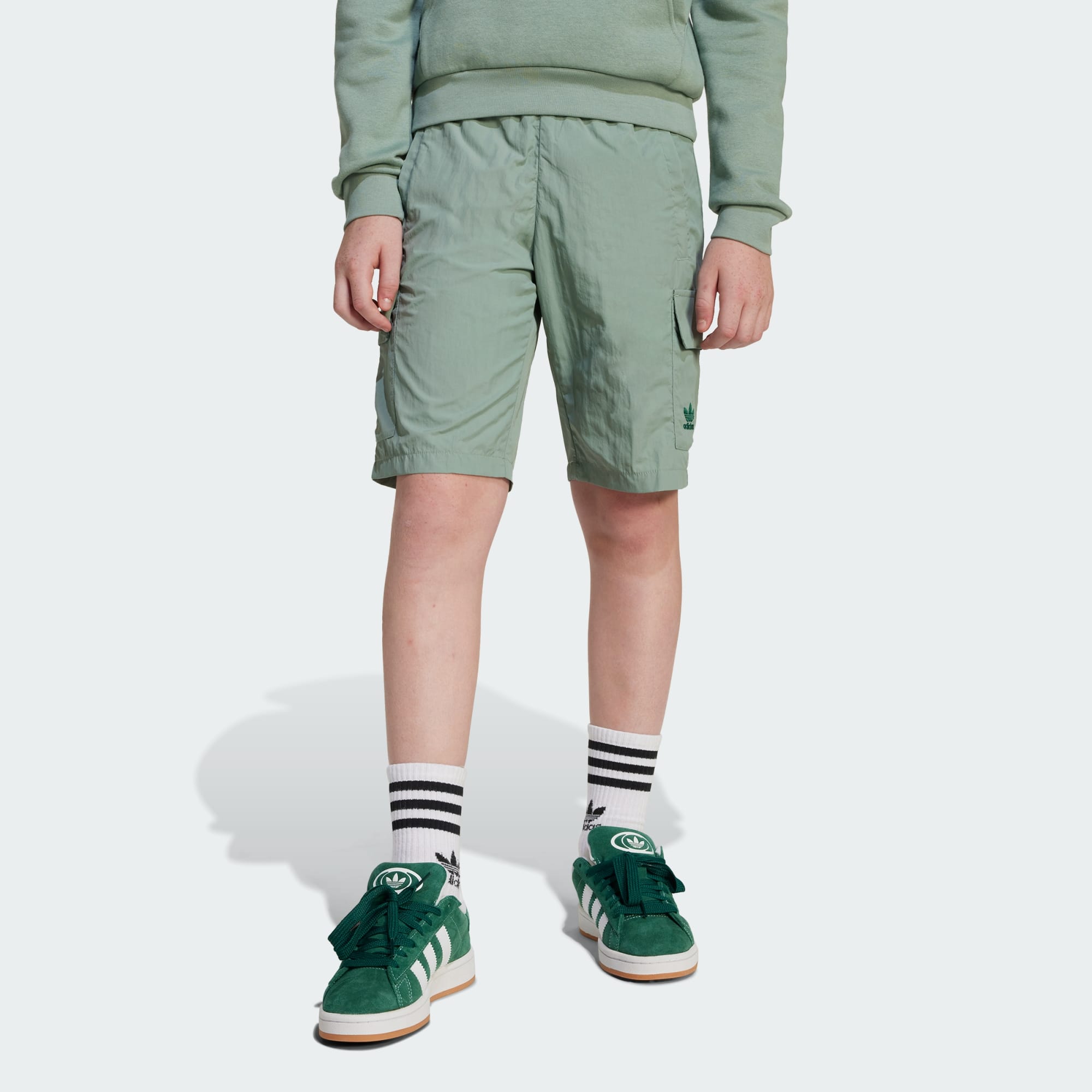Lo stile adattabile incontra i dettagli sportivi in questi short adidas junior. Le tasche laterali e cargo offrono spazio per riporre i tuoi oggetti, mentre la coulisse elastica in vita ti permette di regolare la vestibilità. Il logo del Trifoglio collega il look all'eredità sportiva.