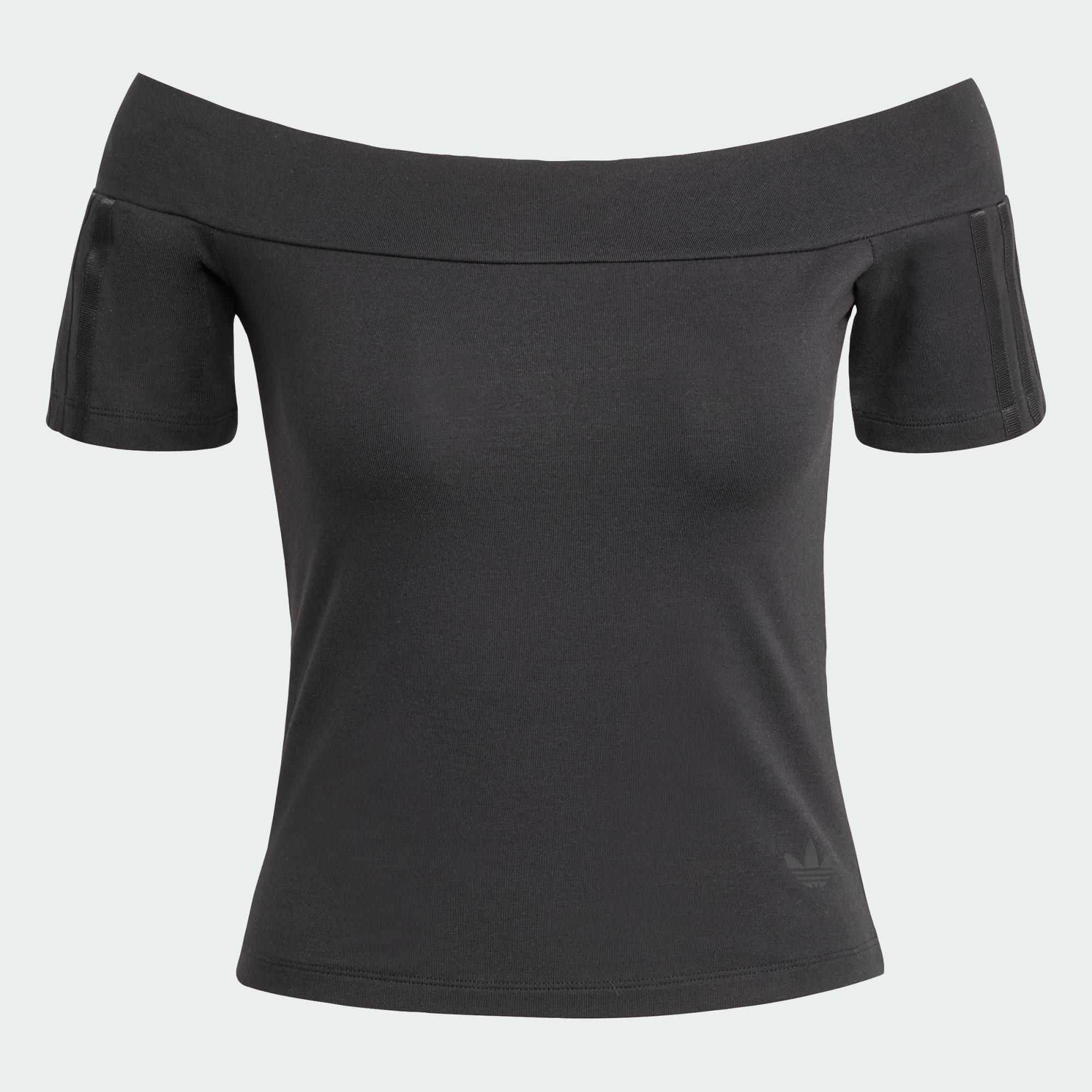 T-shirt morbida ed elasticizzata con spalle scoperte.