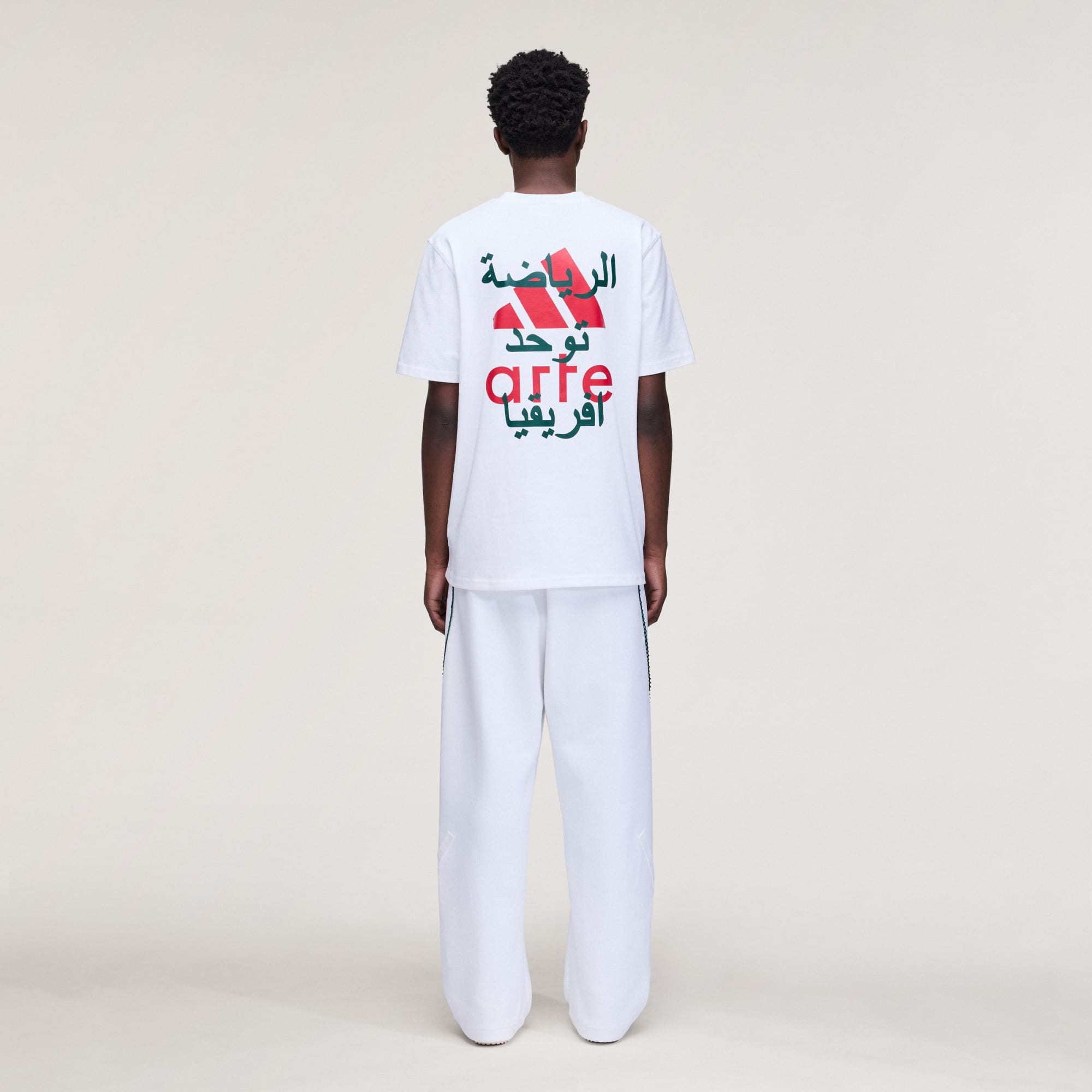 Frutto della collaborazione con il brand belga di lifestyle Arte Antwerp, la T-shirt adidas x Arte Antwerp fa parte di una collezione che si ispira alla cultura calcistica nordafricana, dove lo sport unisce il continente e la sua diaspora, trascendendo il background, la storia e l'identità per creare un terreno comune. Realizzata in cotone jersey, questa T-shirt offre una pratica vestibilità ampia. La parte anteriore è rifinita con loghi ricamati, mentre la parte posteriore mostra una grafica a strati con lo slogan "Sports Unites Africa" in arabo. Per uscire o per rimanere a casa, questa T-shirt incarna lo spirito dello sport e dello stile. Abbraccia l'ottimismo ribelle di adidas e Arte ed esprimi la tua individualità attraverso questo capo.