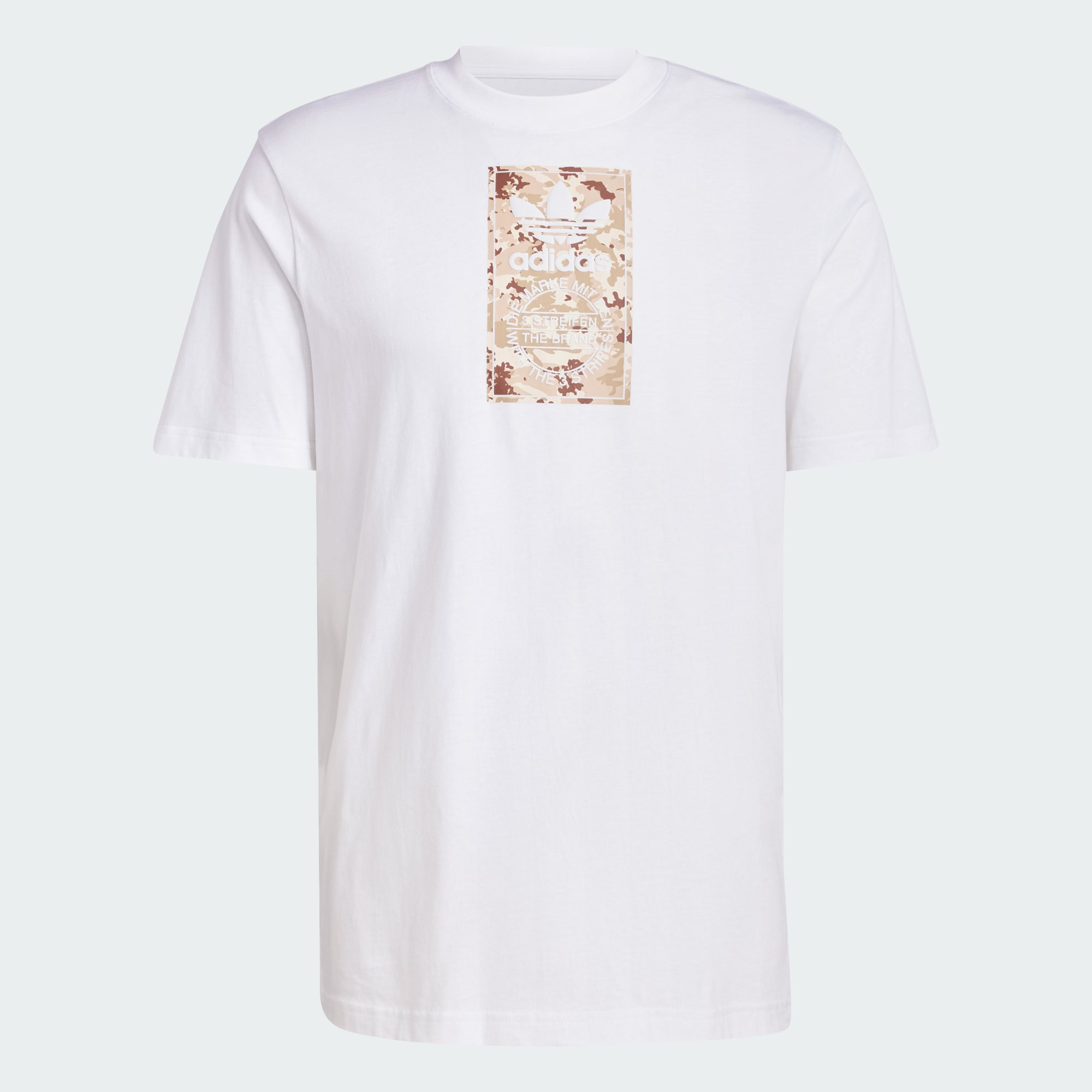 Vivi lo stile 3-Stripes con questa T-shirt adidas. La struttura in jersey e il girocollo a coste ti faranno sentire sempre a tuo agio, mentre la vestibilità regolare ti assicura la libertà di movimento di cui hai bisogno. L'etichetta mimetica sul petto aggiunge un tocco trendy.