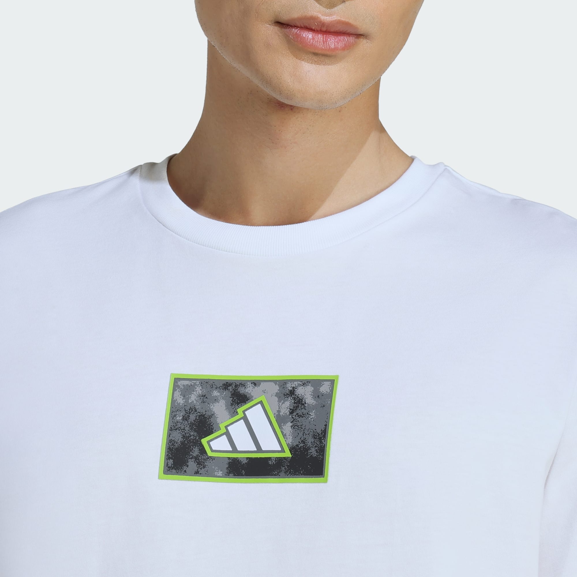 Questa t-shirt adidas fa una dichiarazione. Realizzato in cotone morbido e traspirante, ti mantiene comodo sia in movimento che semplicemente rilassandoti. Un logo a 3 barre si trova all'interno di una scatola con stampa mimetica per un tocco grafico audace.